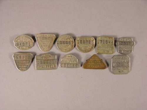 11 Indiana Chauffer lic. Badges, 1936-1947