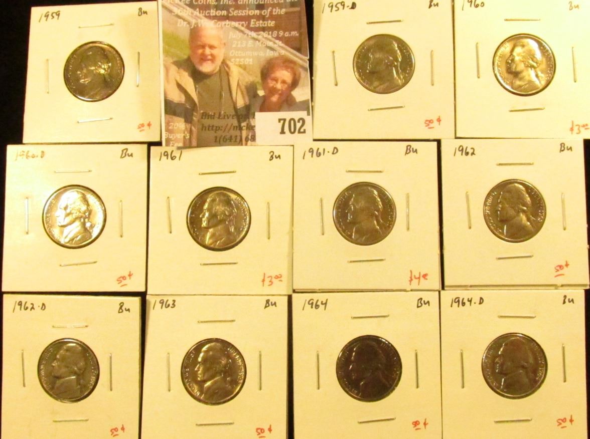 (11) Jefferson Nickels, 1959PD, 1960PD, 1961PD, 1962PD, 1963, 1964PD, all BU, nice BU group for an a