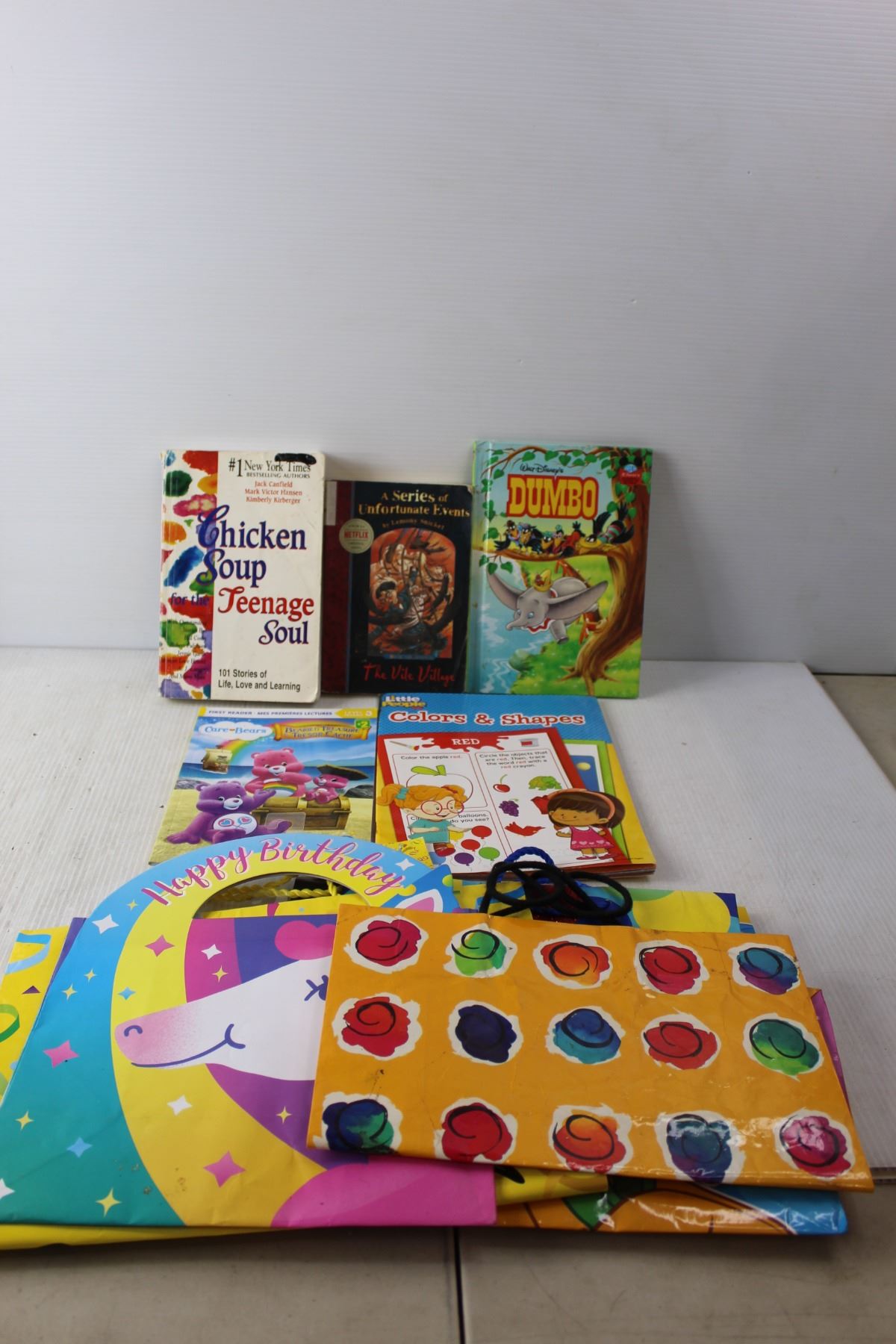 (11) Kids' Books- Dumbo, Series of Unfortunate Events, Chicken Soup for Teenage Soul, Misc. and Gift Bags