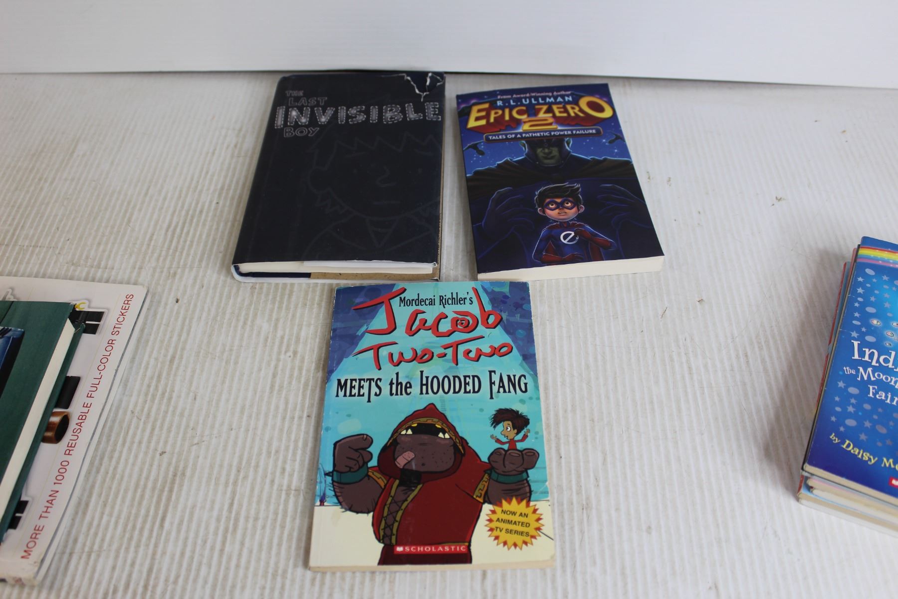 (11) Kids Books (Rainbow Magic, Ghostbusters, LEGO Minifigure Ultimate Sticker Collection [Some Stickers Used])