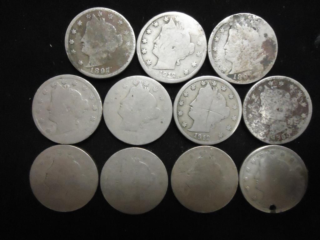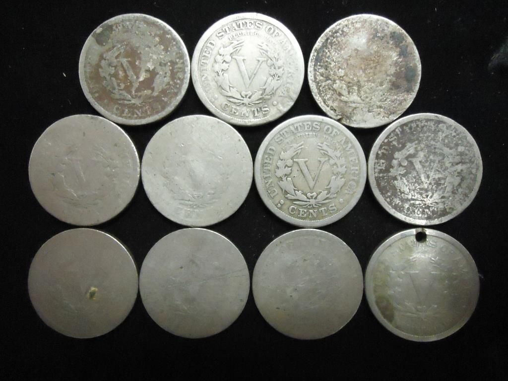 11 LIBERTY "V" NICKELS ROUGH SHAPE