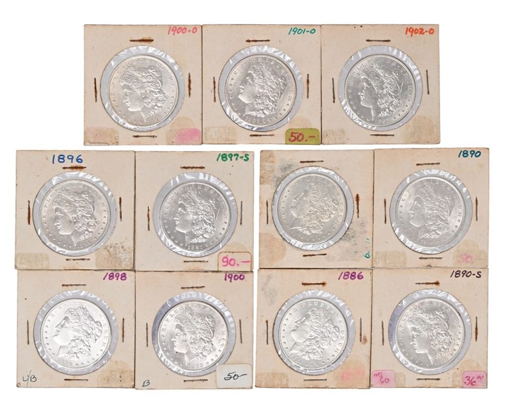 1879, 1886, 1890, 1890-S, 1896, 1897-S,1898, 1900, 1900-O, 1901-O & 1902-O.