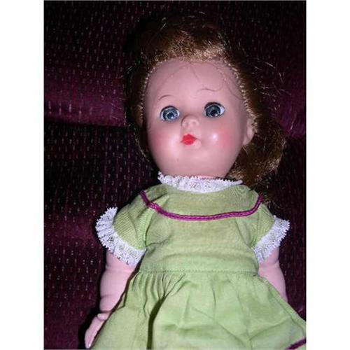 11" Nancy Ann Debbie. She has tagged dress that says Styled by Nancy Ann , etc. Her panties are original but are soiled and a little stretched at the wasit. The head turns when the legs move. The knees bend. No shoes. Hair is pulled back in a ponytail. Doll comes from a smoke free environment. Buyer to pay $10 for shipping, handling, and insurance. Thanks for viewing.