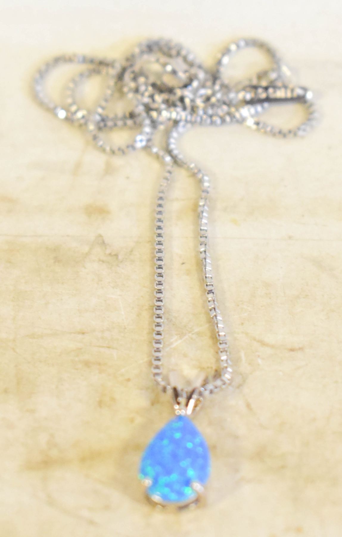 OPAL PENDANT ON 18" BOX LINK CHAIN. JEWELERY