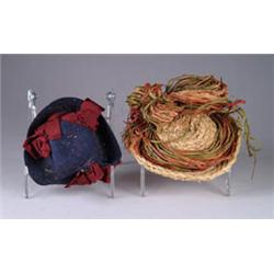 11 PIECES OF CLOTHING. Lot consists of antique hats, Jumeau socks and other miscellaneous items. CONDITIONS: Varies from poor to very good. JL 1-3215-1073
