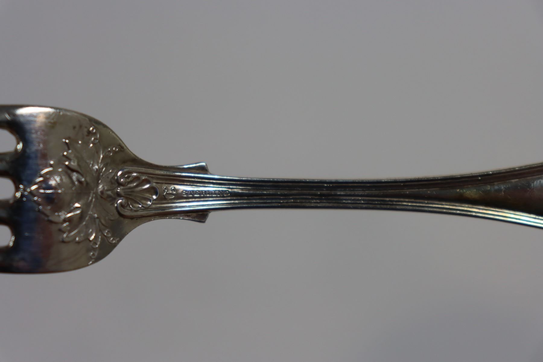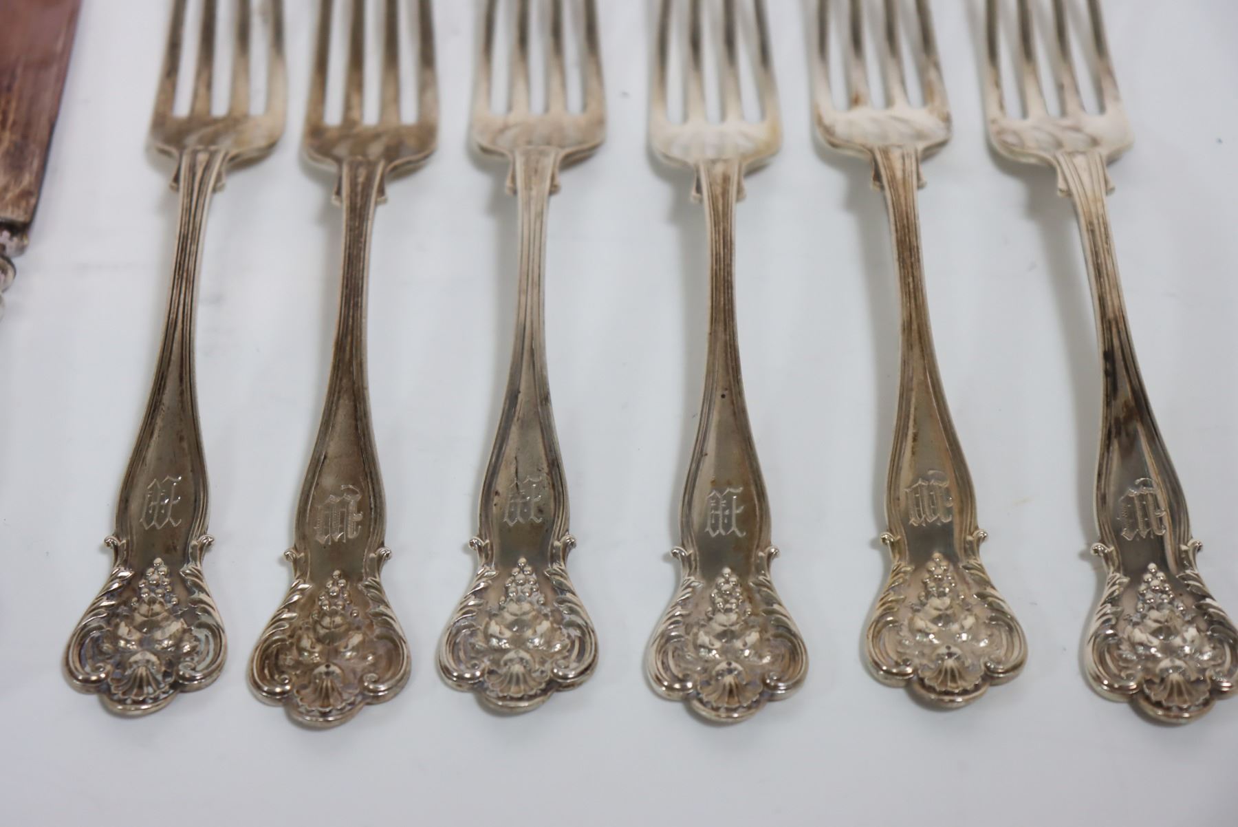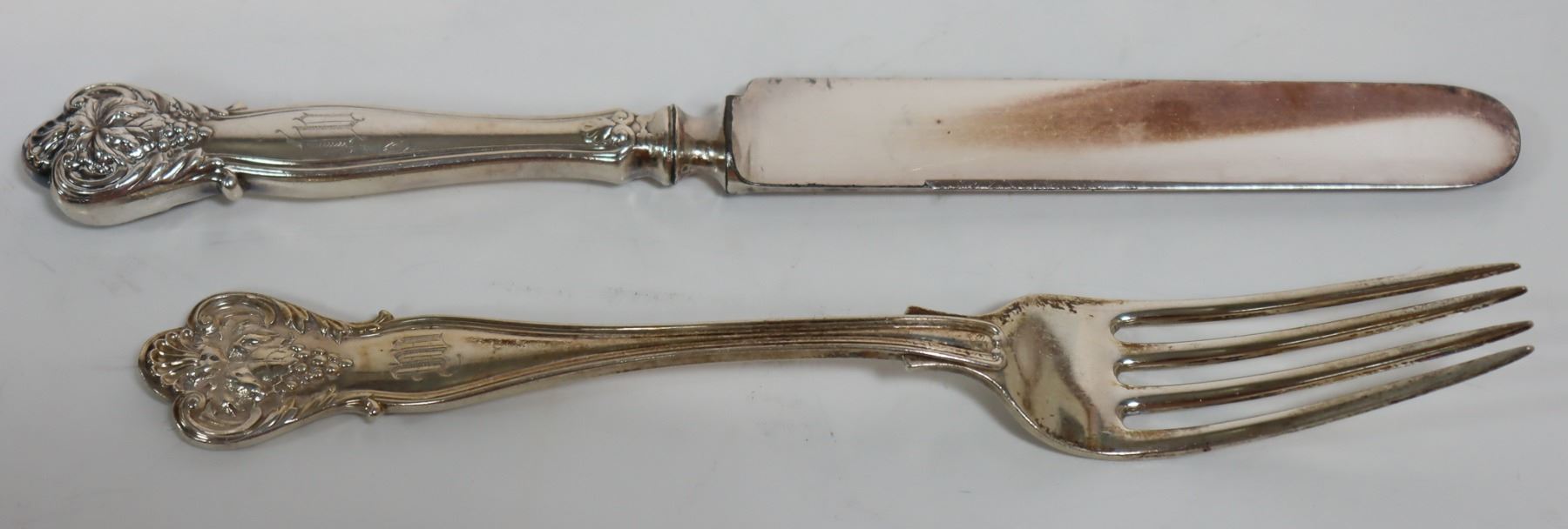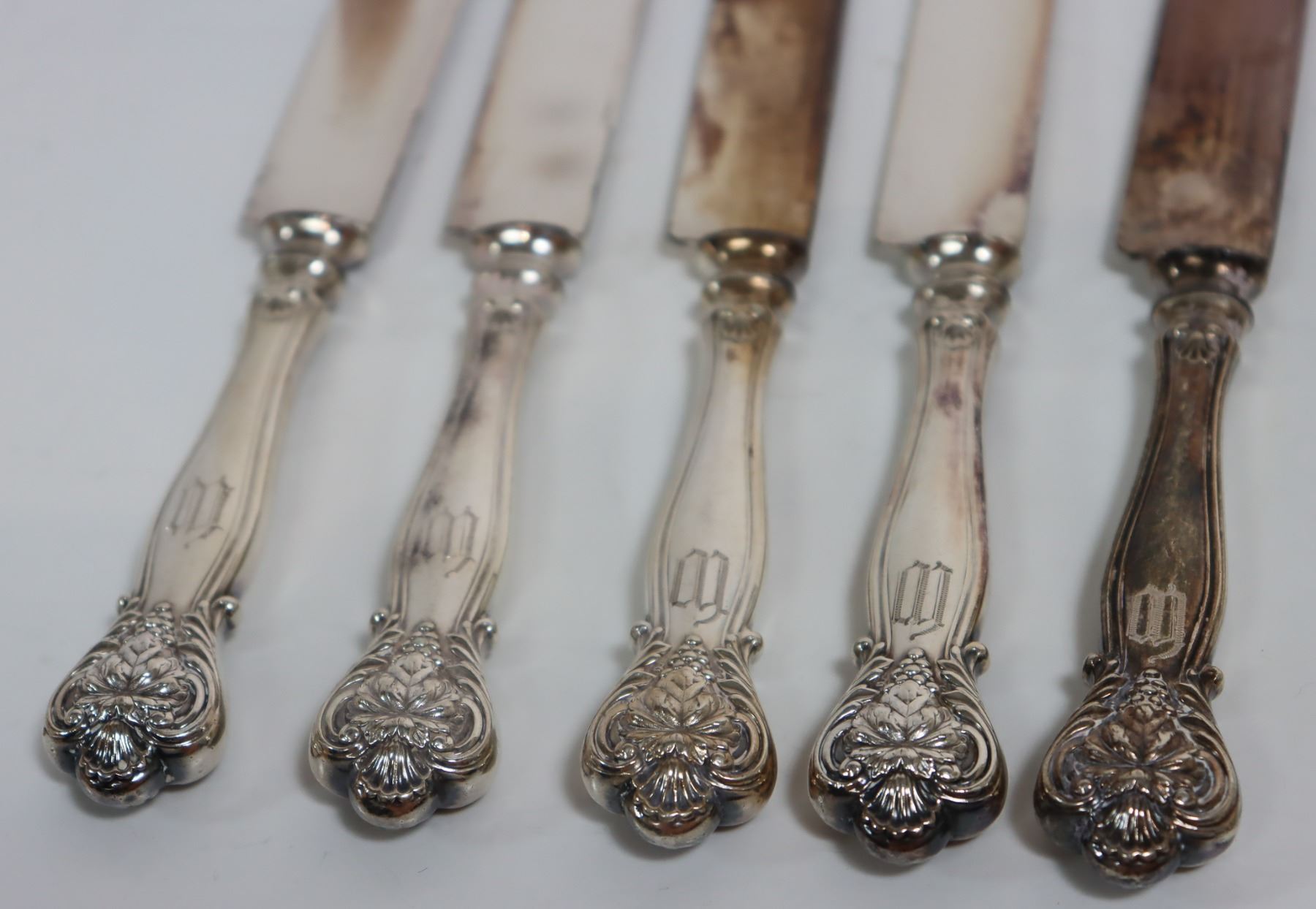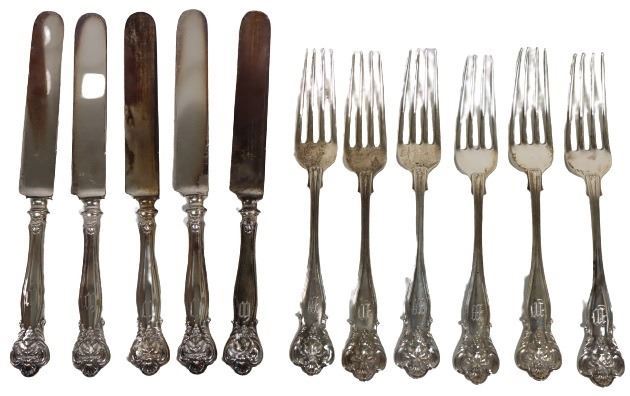 Eleven pieces in total. Forks and knife handles are sterling. Knives were not weighed.