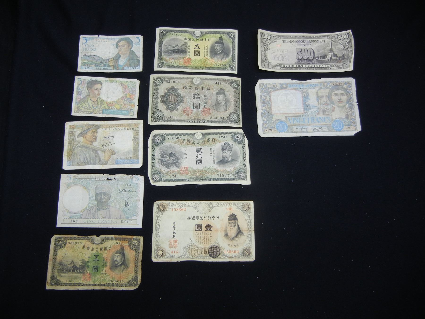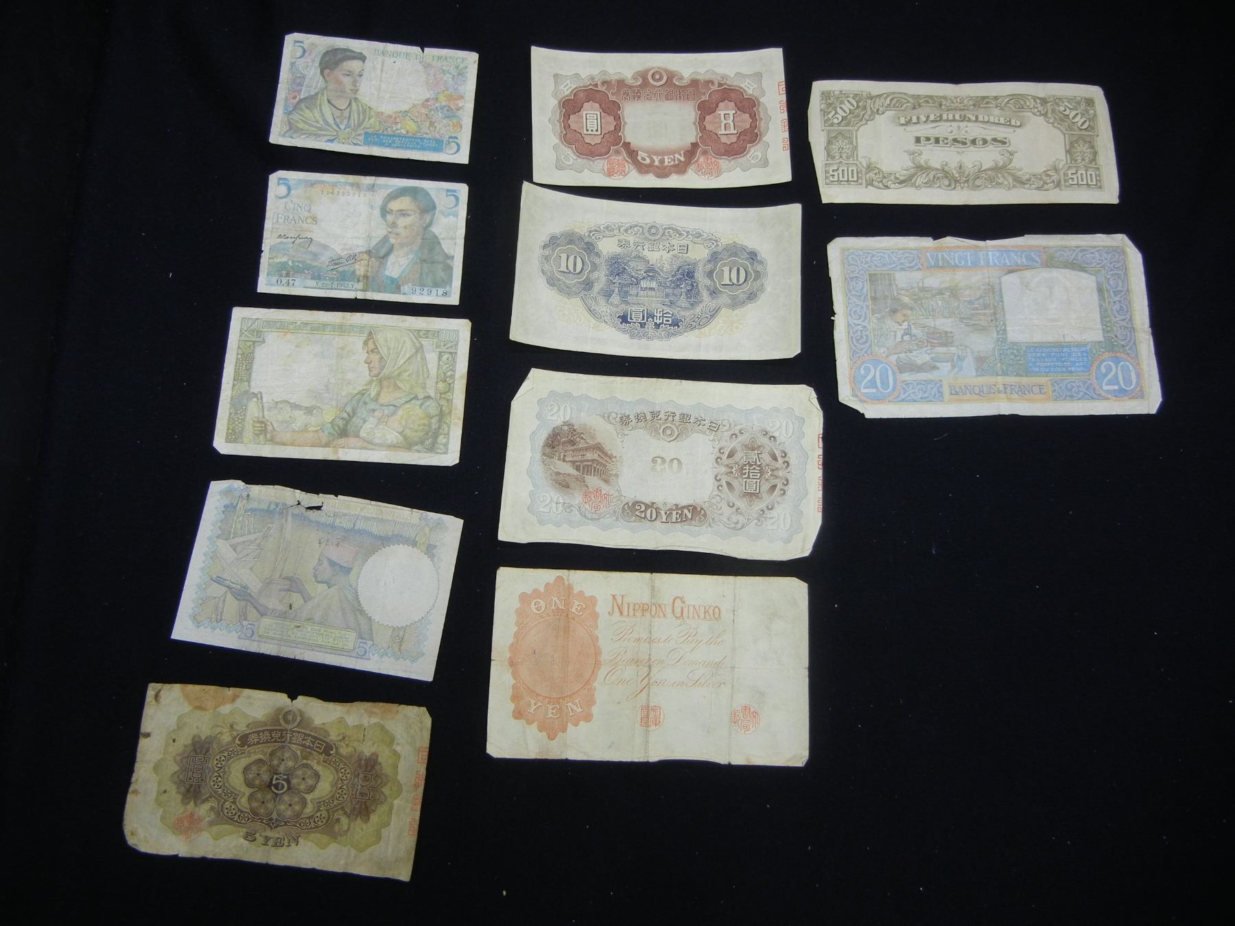 11 Pieces Vintage Foreign Currency