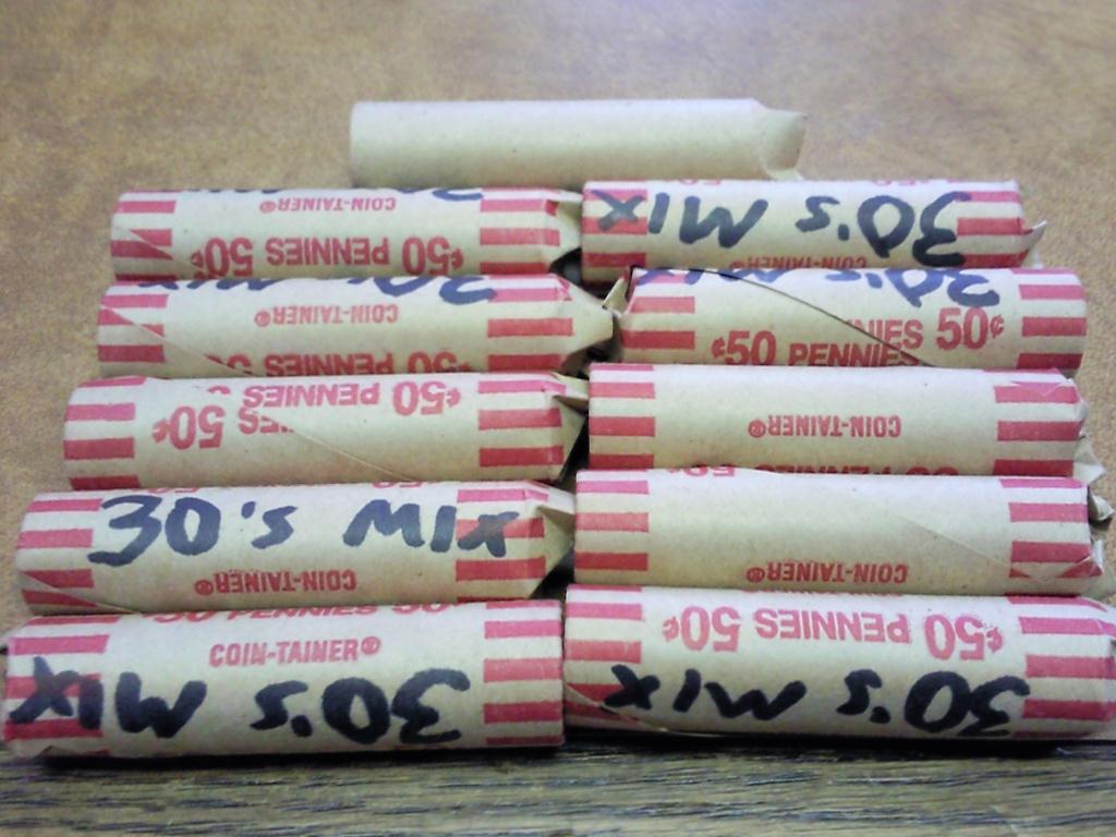 11 ROLLS OF ASSORTED 1930'S LINCOLN WHEATS