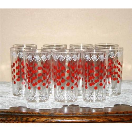 <tr><td>Title:11 Retro Red Polka Dot Water Juice Glasses</td></tr>