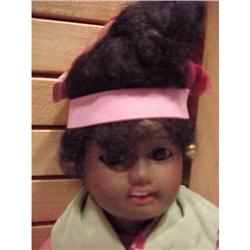 This is the ethnic Unis # 60. She has a bisque head and compo body. The black paint on the head is splotchy in places especially on the neck front and back but it is not easily noticed. The costume appears original as is the wig. The compo body is painted nicely and the clothing is in good condition. I see no breaks or major damage. She books for 375.00+ but my price is much lower. Make an offer if not in an auction.