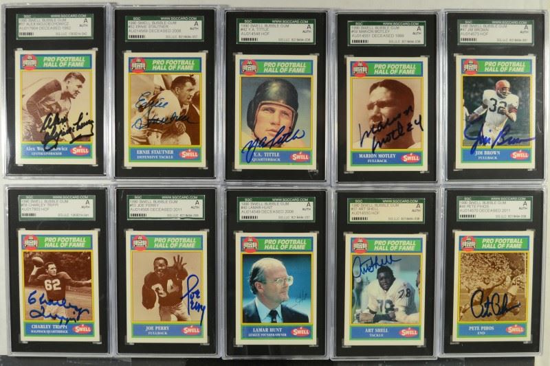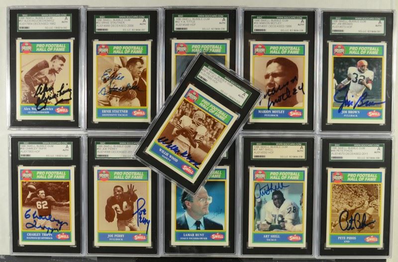 11-SGC GRADED PRO FOOTBALL HOF CARD LOT, TITTLE, JIM BROWN, PERRY
