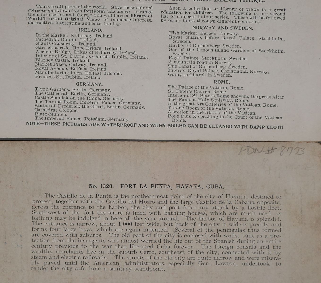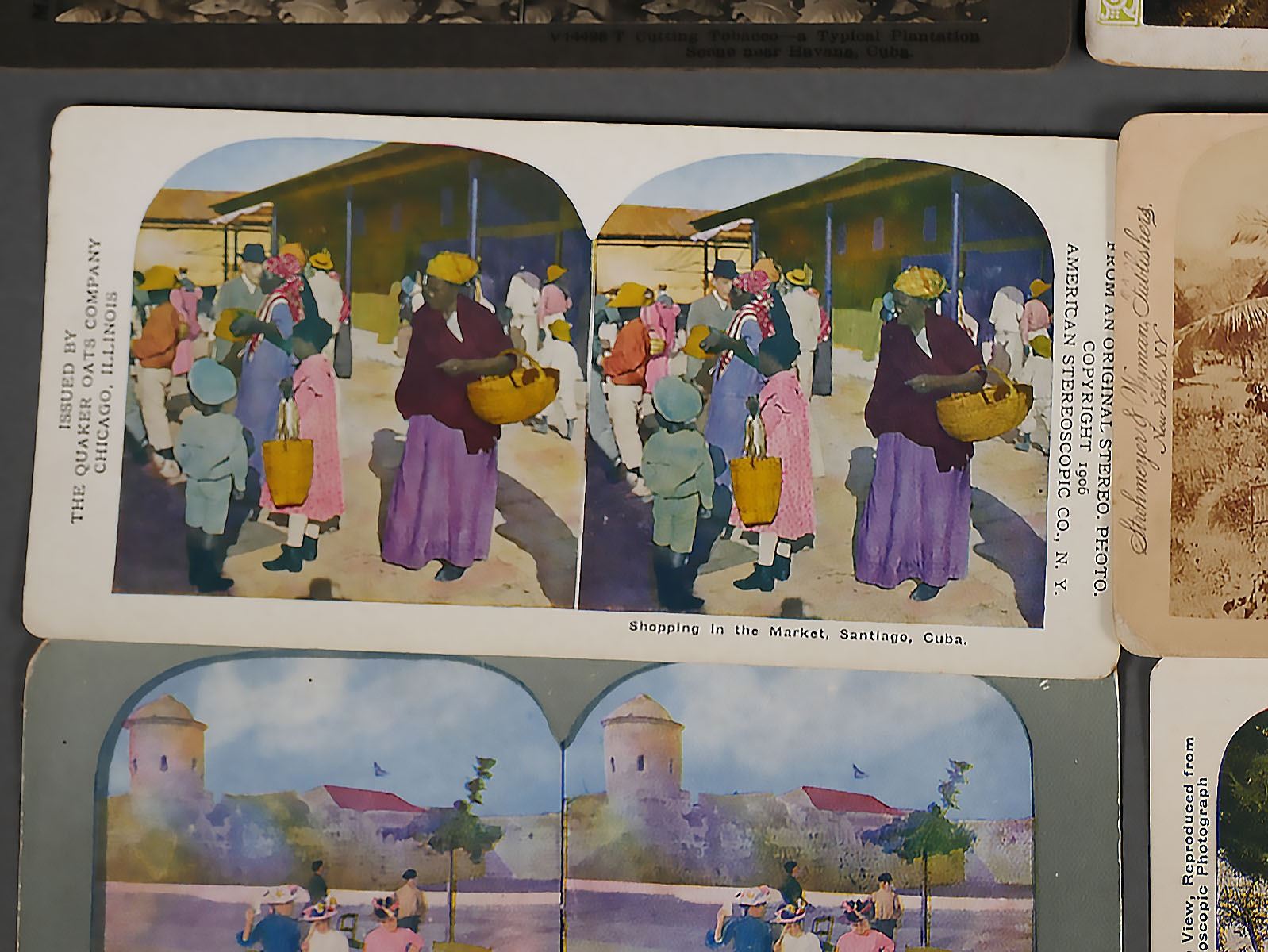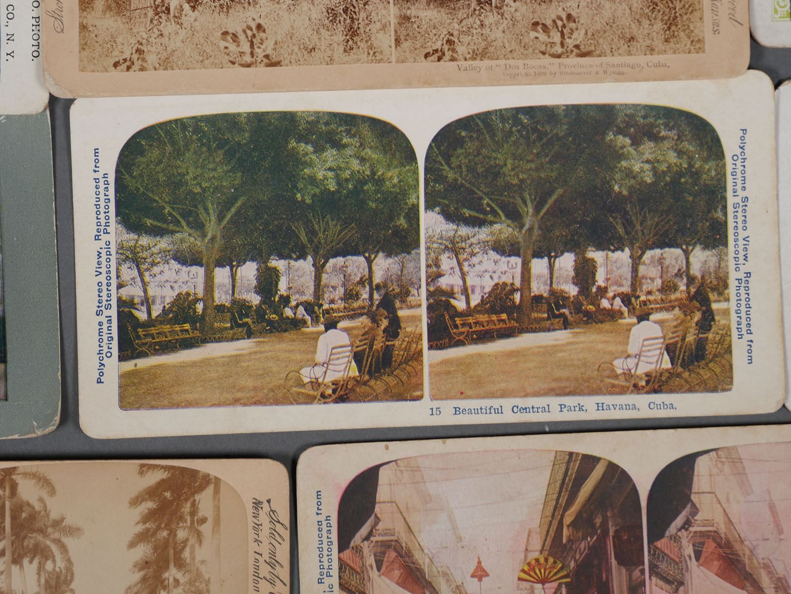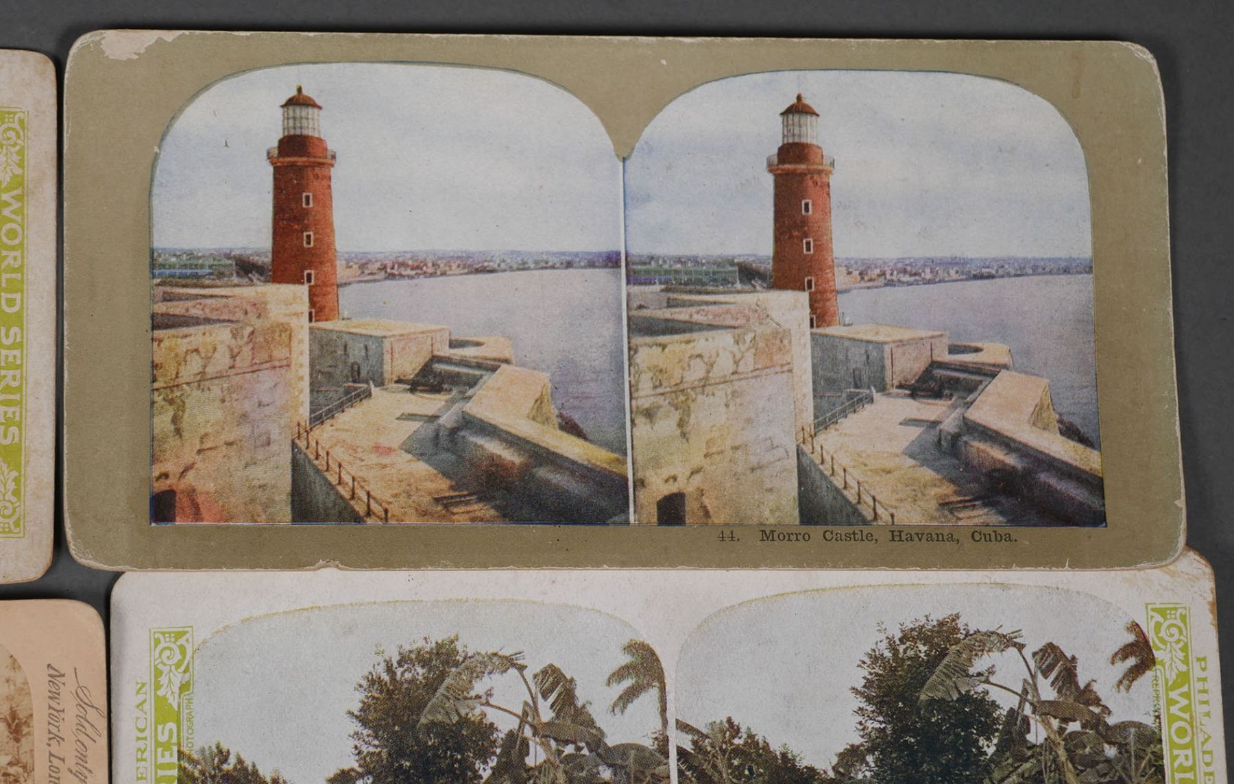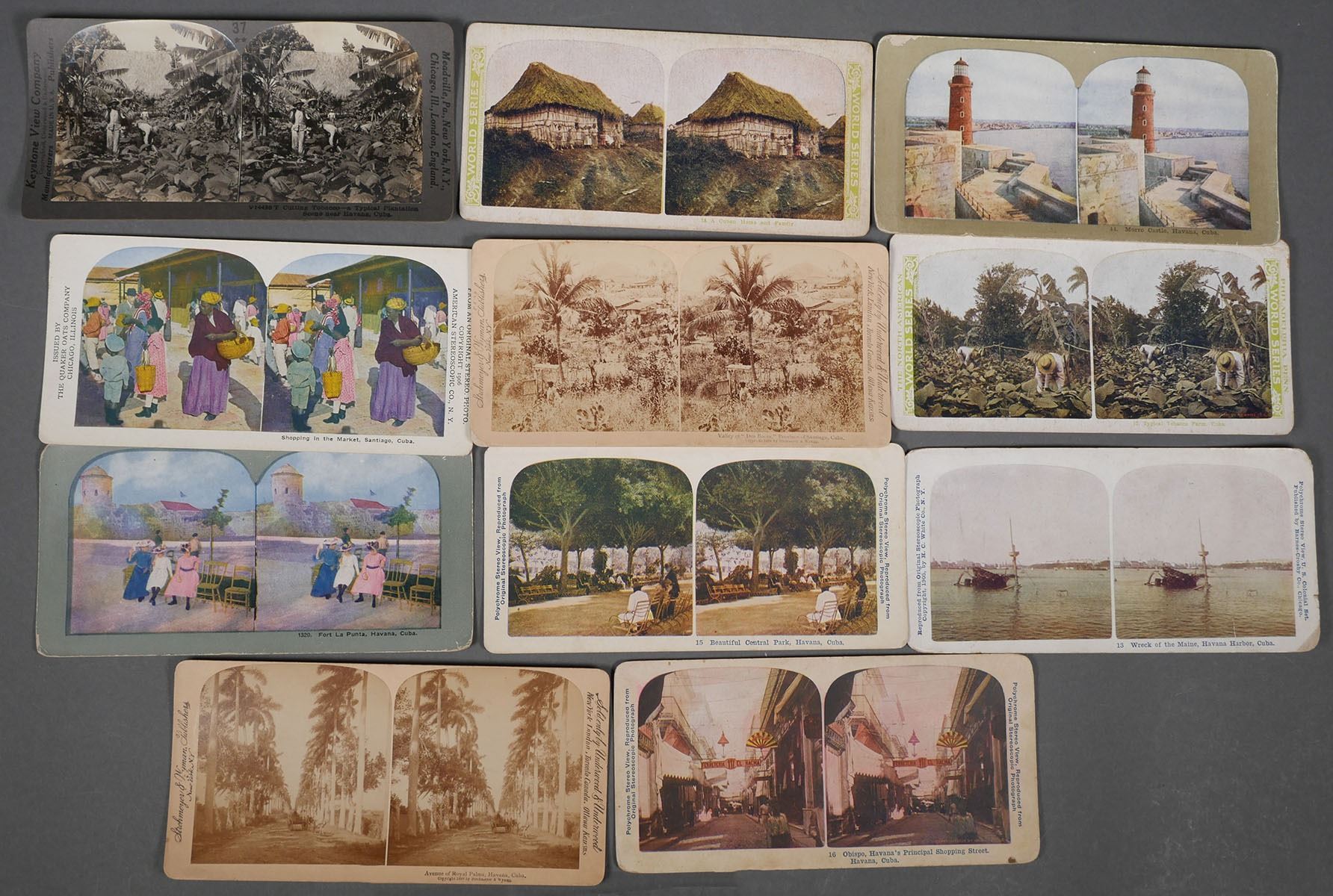 (11) Stereoview photos by various makers of Cuba. Landmarks in or near Havana & Santiago. Some photos are in color or colorized. Overall most are in very good condition with little or no loss to the photos. Some have paper loss around the edges, creasing, staining. All but one Keystone photo has pencil writing on the back. See photos for more details on condition.