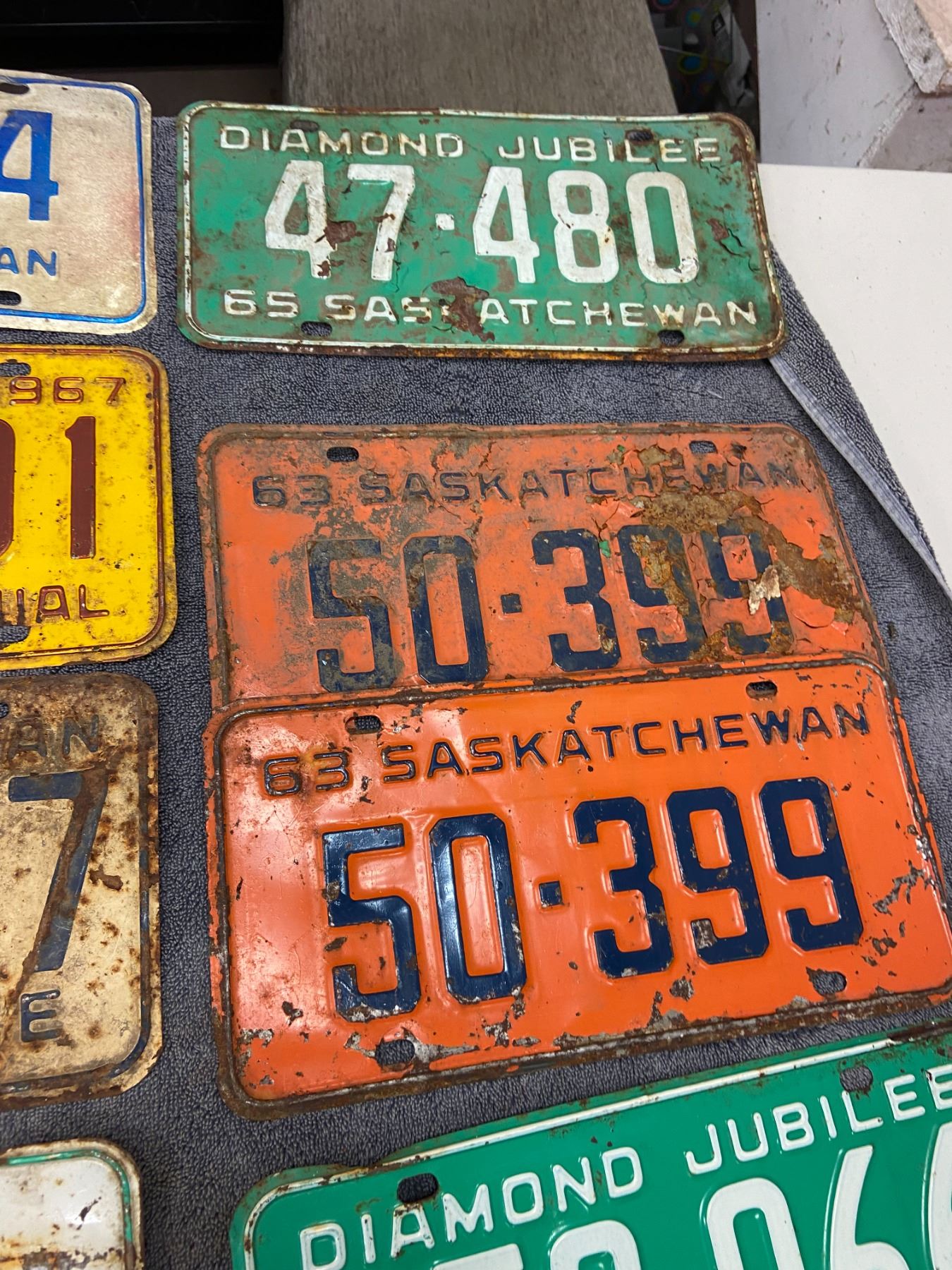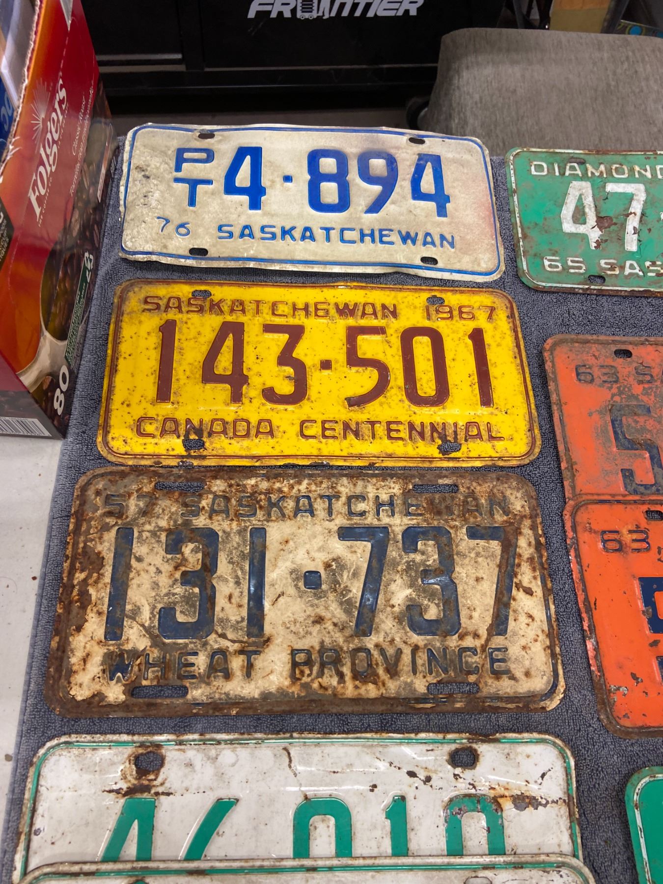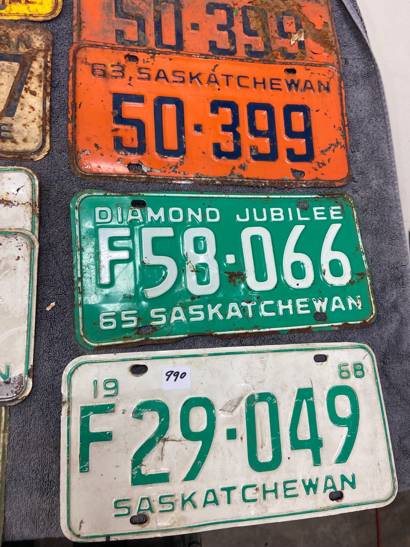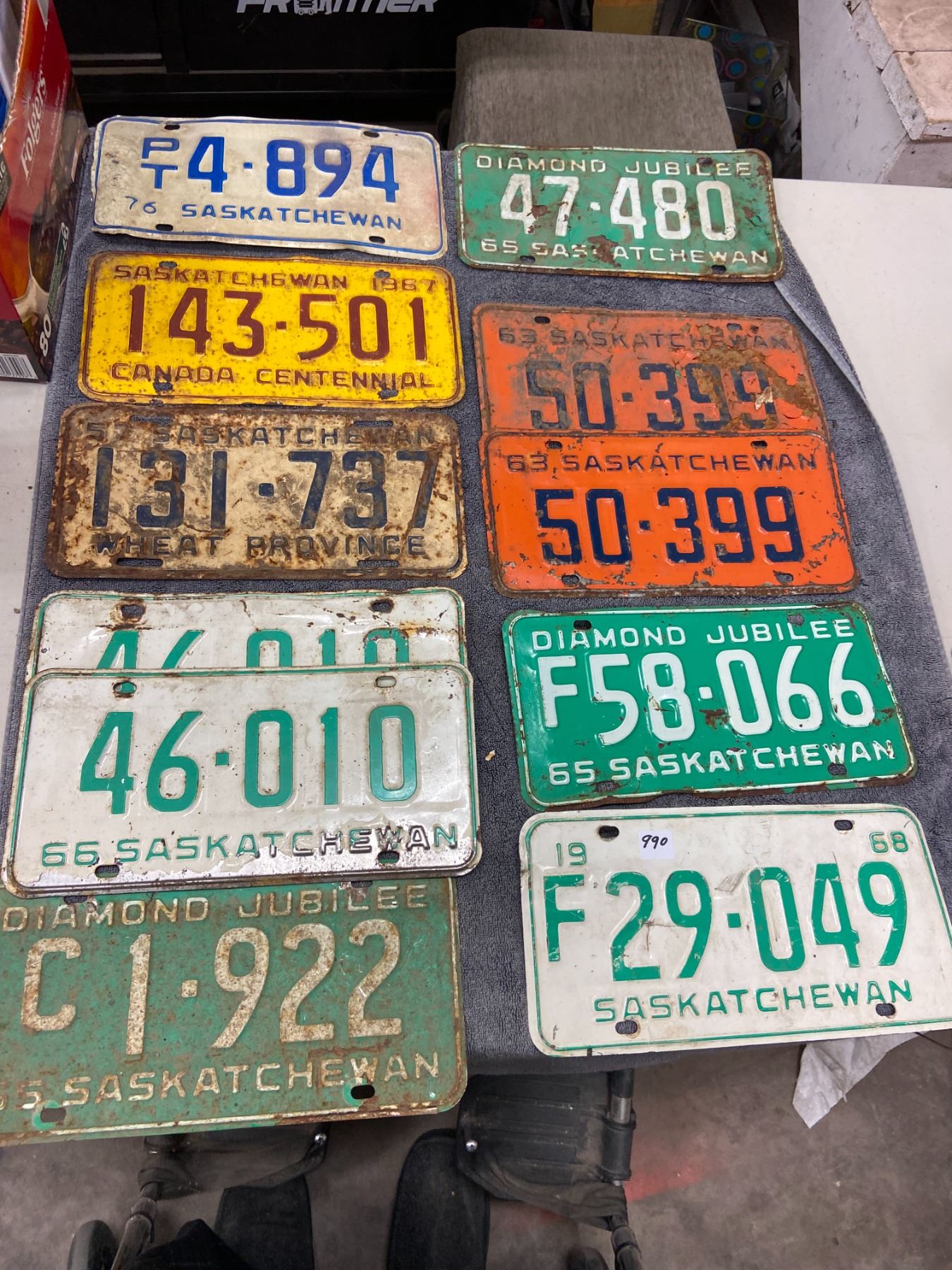 11 Saskatchewan license plates - 2 pairs, 7 singles