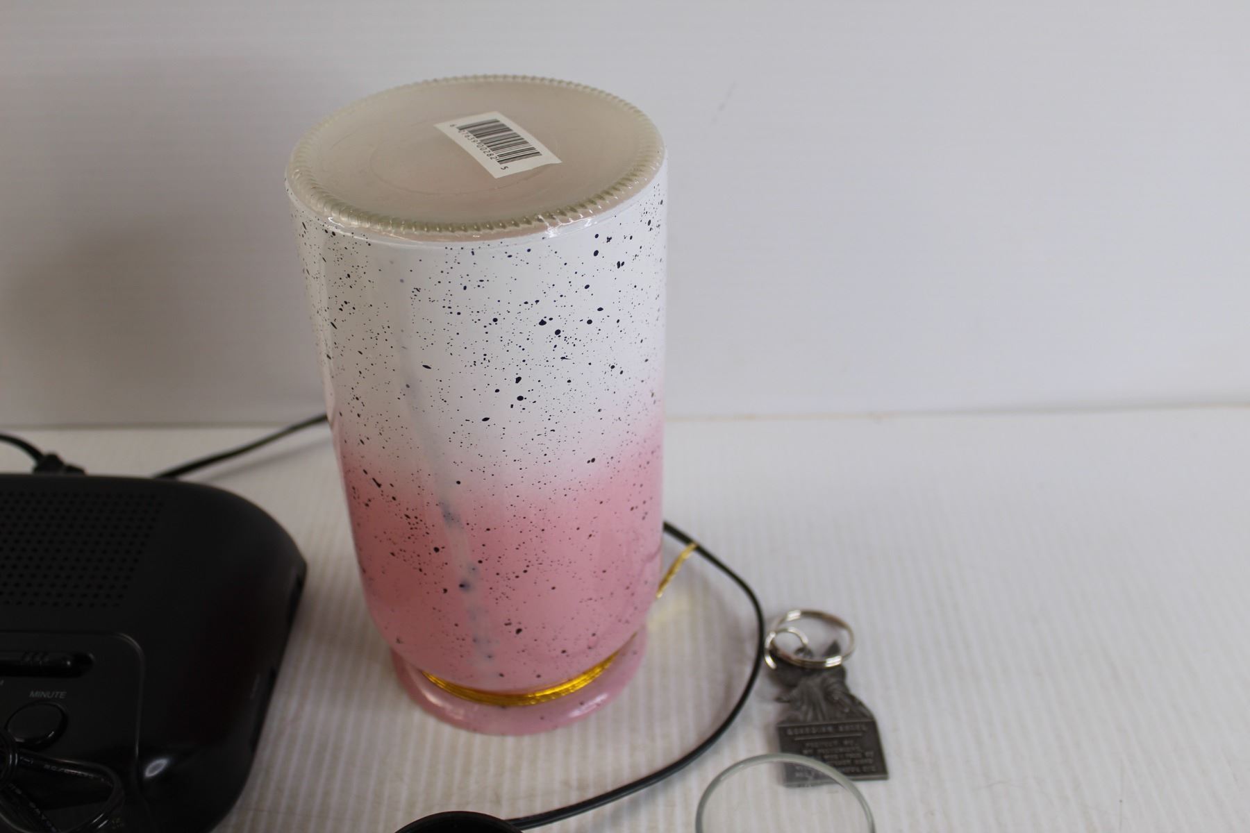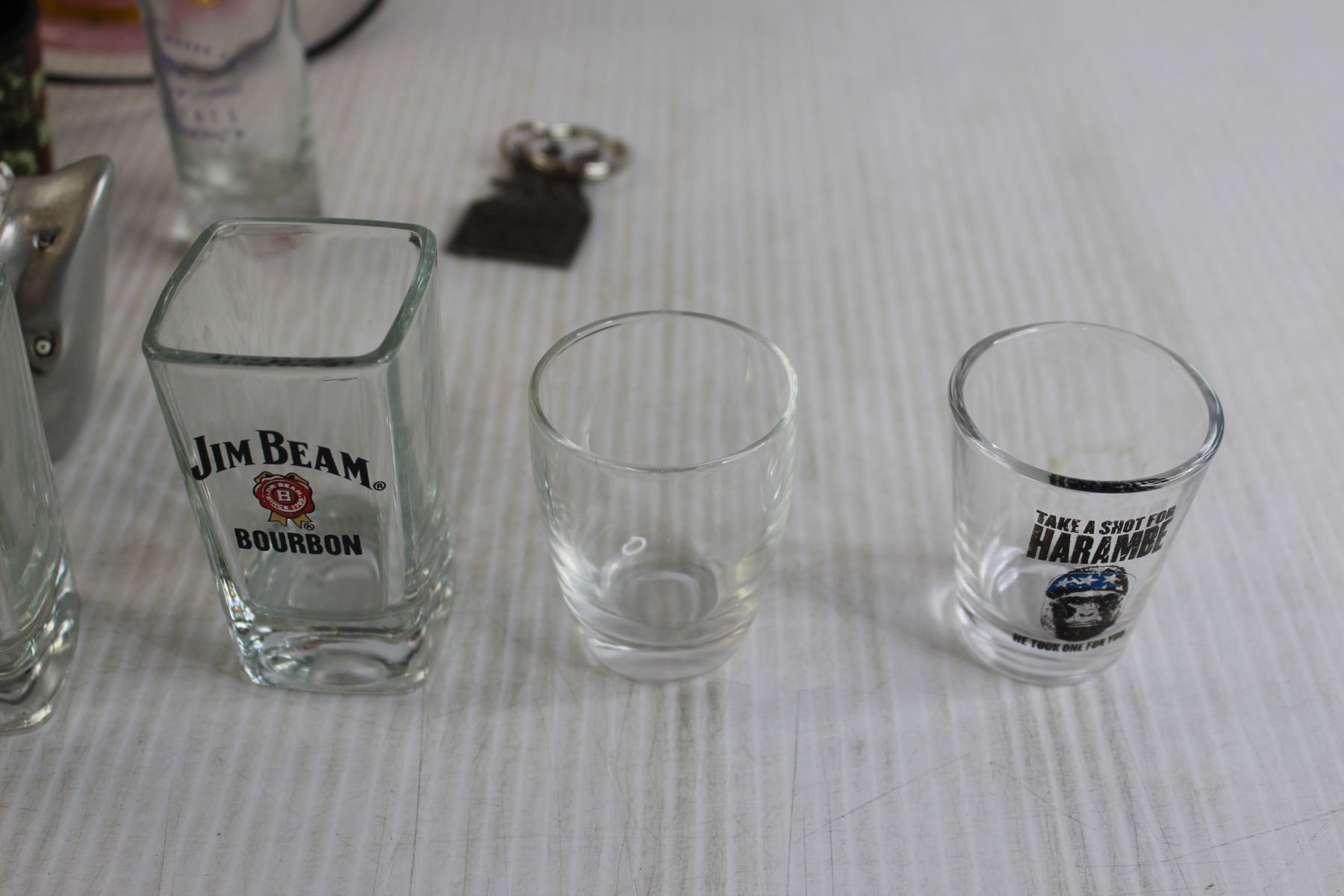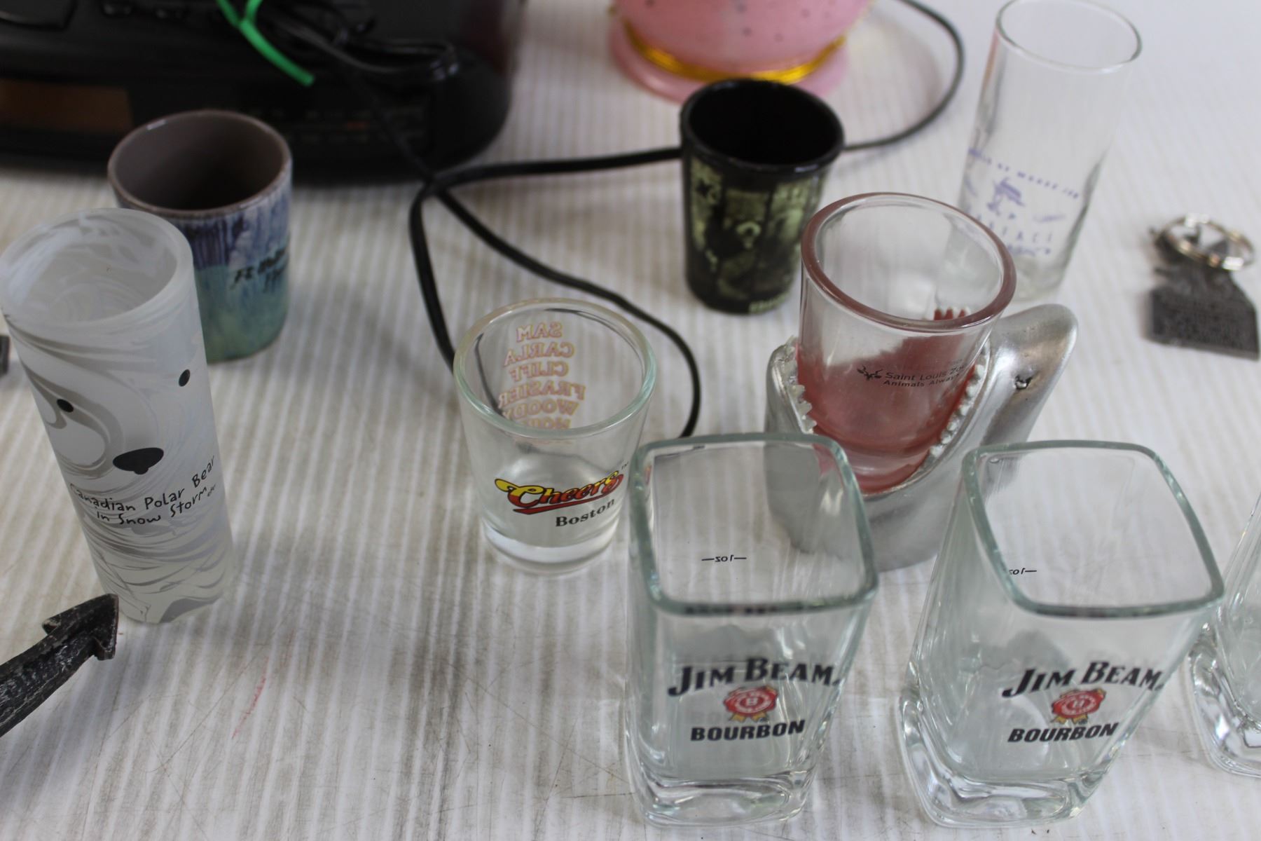 (11) Shot Glasses - Shark, Polar Bear, Harambe; Alarm Clock - Untested; Misc.