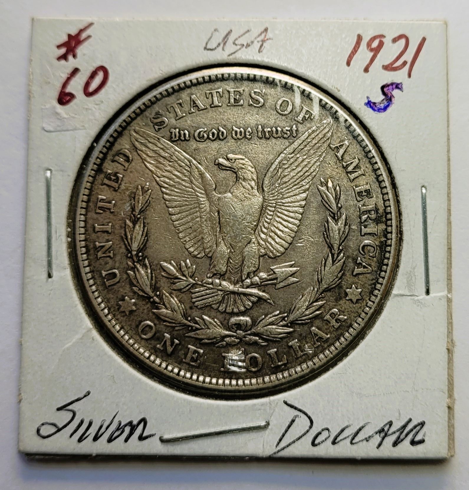 11) US 1921 S, MORGAN SILVER DOLLAR.