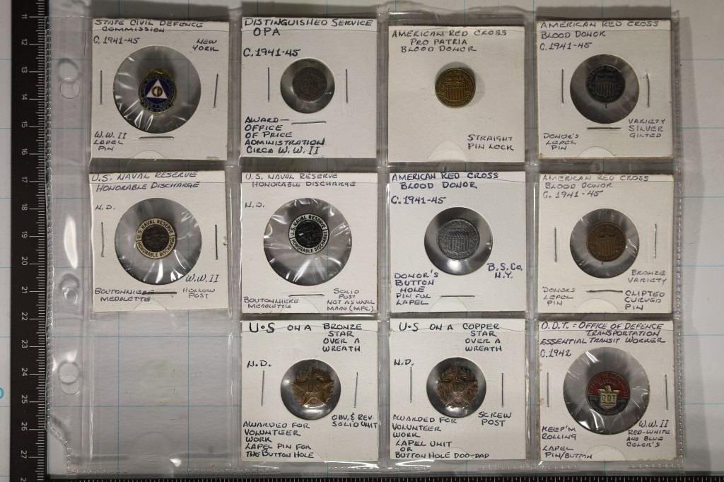 RED CROSS, OFFICE OF DEFENSE, NAVAL RESERVE, CIVIL DEFENSE, BRONZE STAR OVER WREATH ETC...