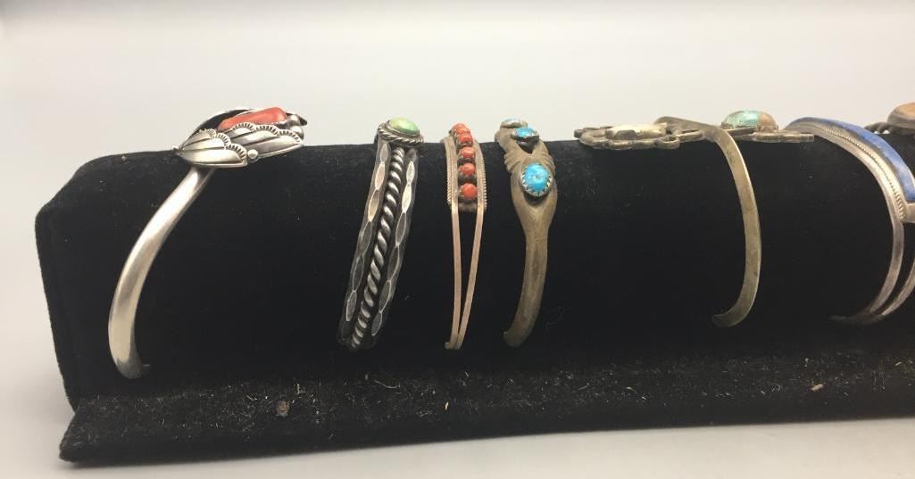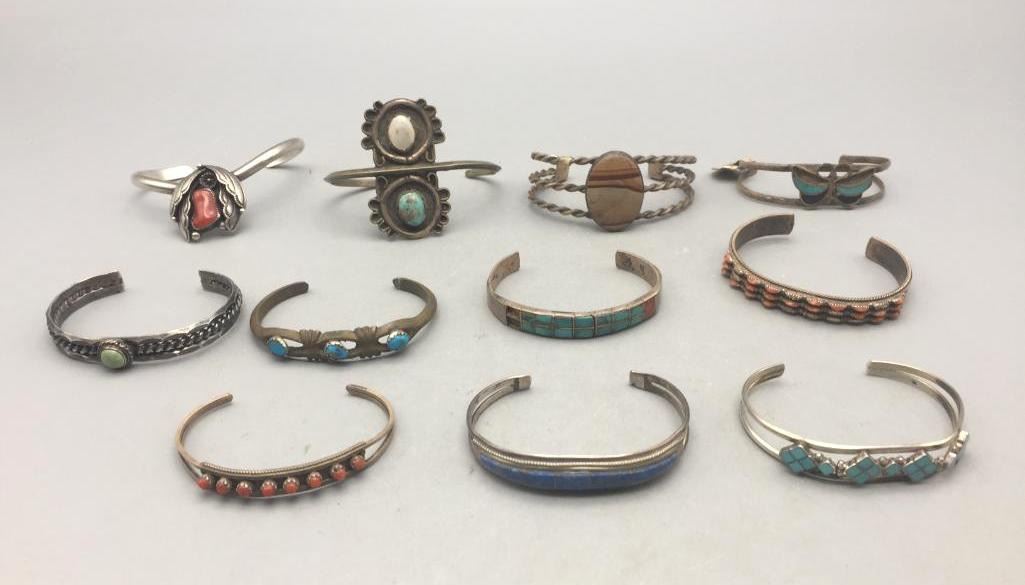 Description: For your consideration are 11 vintage bracelets for one price! All are various sizes, designs and have various stones. Maker: Various. Approx. Age: Vintage. Size: Various. Combined weight is 189.5 grams. Condition: Good for their age, normal wear expected. Please look closely at the pictures - they are an important part of our description. Shipping: There will be a $5 handling / packaging fee for shipping this lot. The actual cost of postage will be added on top of that.