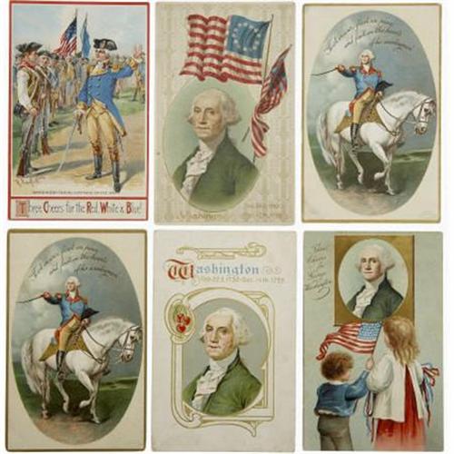 <B>Lot of 11 Printed Vintage Washington’s Birthday Post Cards,</B></I> 1890s to 1910s, some used, some divided back, some embossed, and others white bordered. Most near fine or better. A great lot!<BR><BR><b>Shipping:</b> Flat Material, Small (<a target="_blank" href="http://www.heritageauctions.com/common/shipping.php">view shipping information</a>)