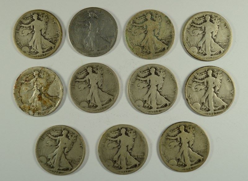 (11) WALKING LIBERTY HALF DOLLARS (16, 16-D, 16-S, 17-D OBV, 17-S OBV, 17-D REV,
