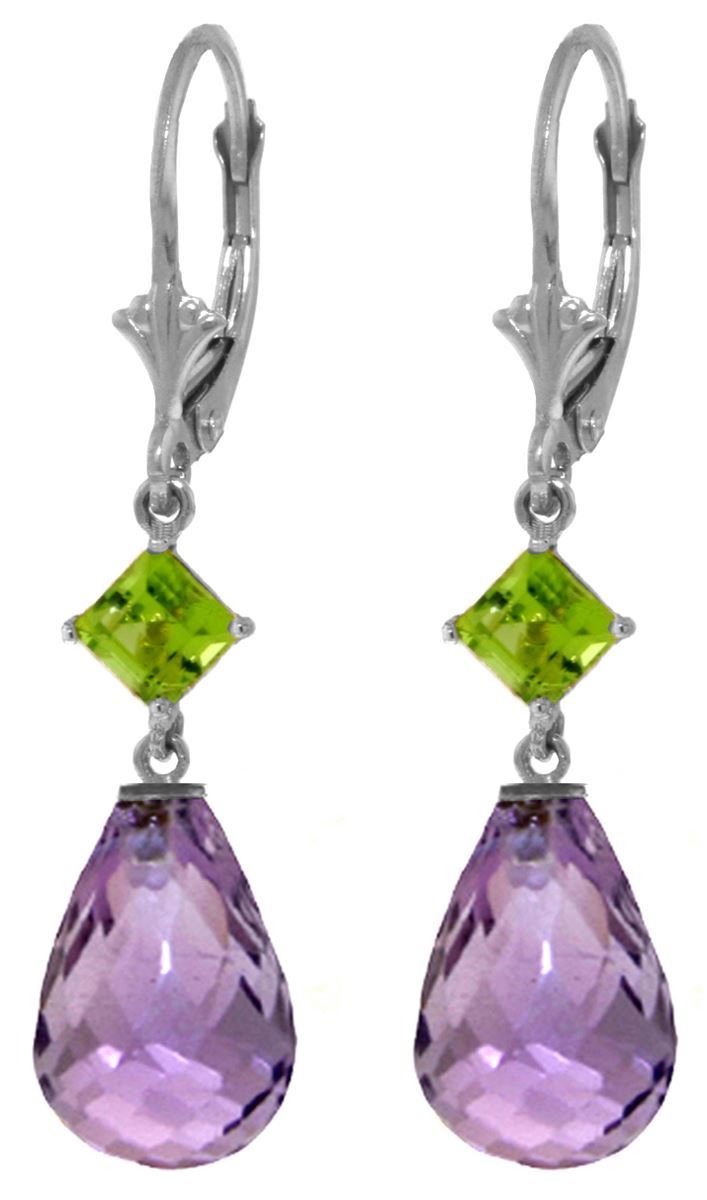 Genuine 14K White Gold 11 ctw Amethyst & Peridot Earrings