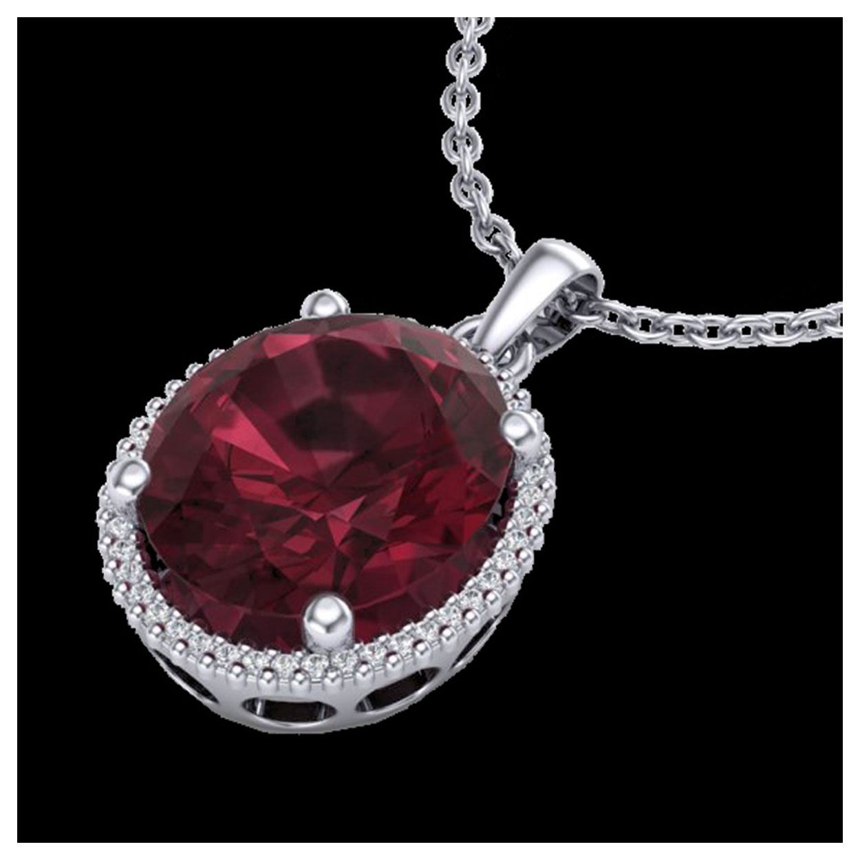 11 ctw Garnet & VS/SI Diamond Necklace 18K White Gold