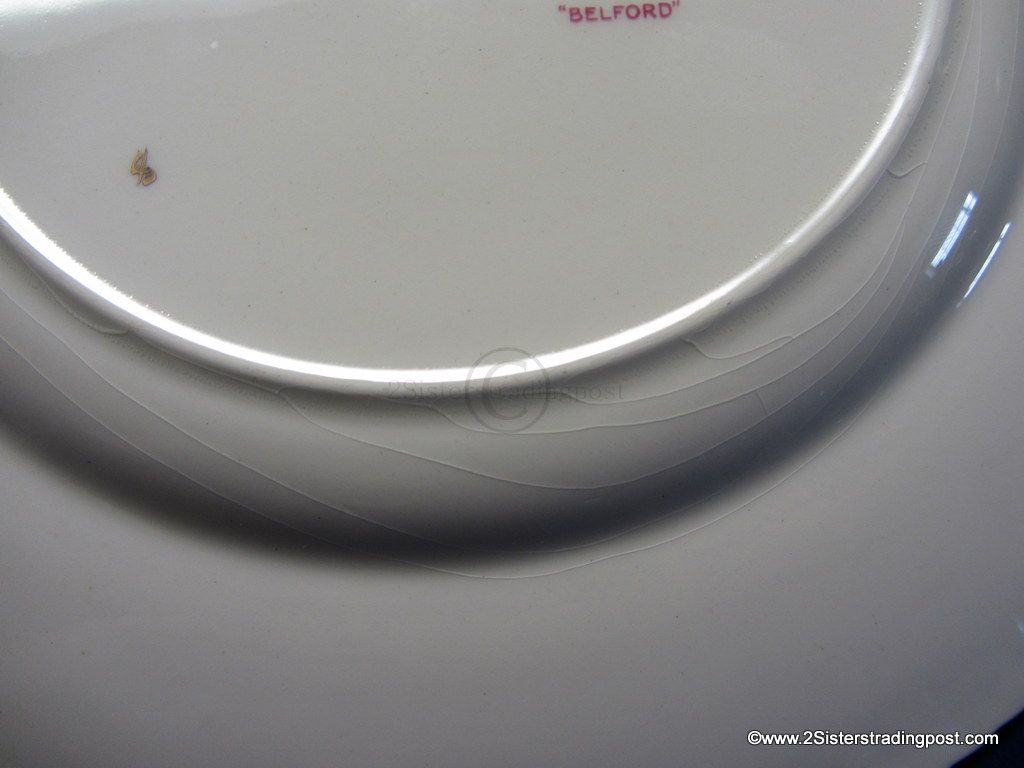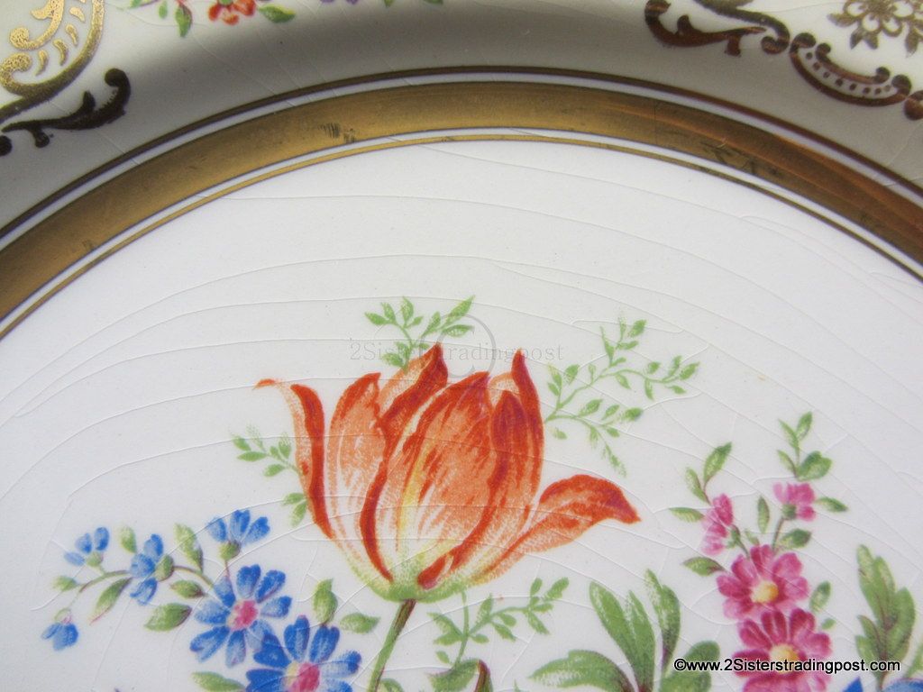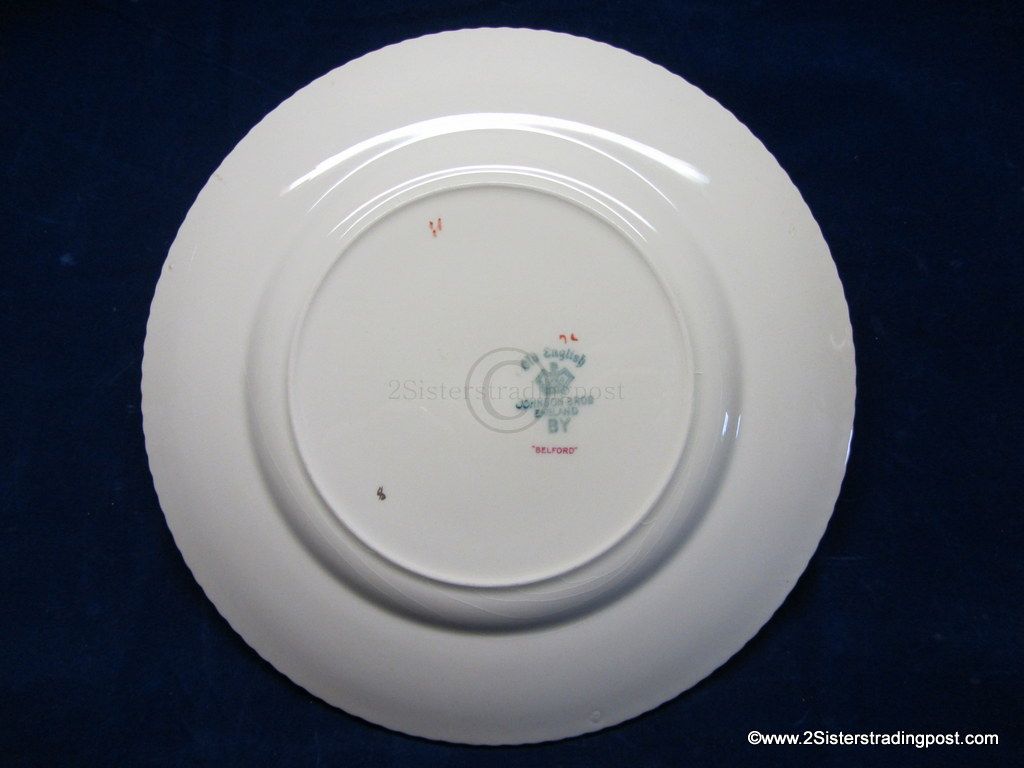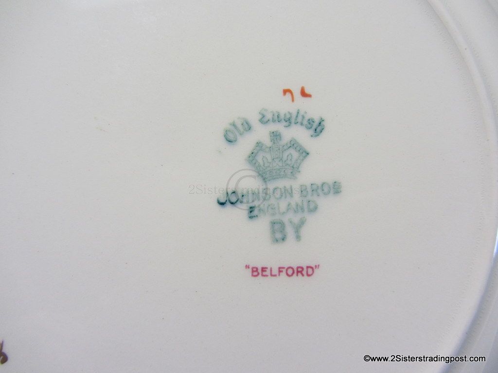 Pattern is BELFORD by Johnson Brothers this pattern is a discontinued item. The design is old English, multi-color flowers accented in gold plate measures 11" across. This piece has been used as a wall hanging not a dinner plate. Beautiful piece in very nice condition. NOTE: there is crazing present.