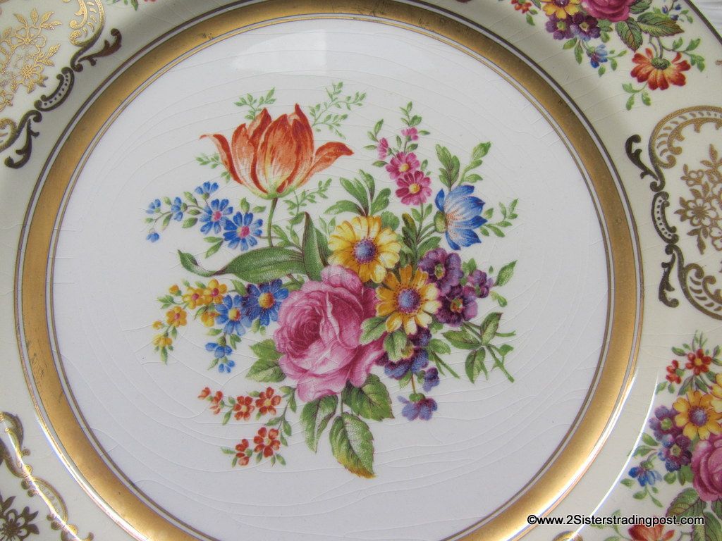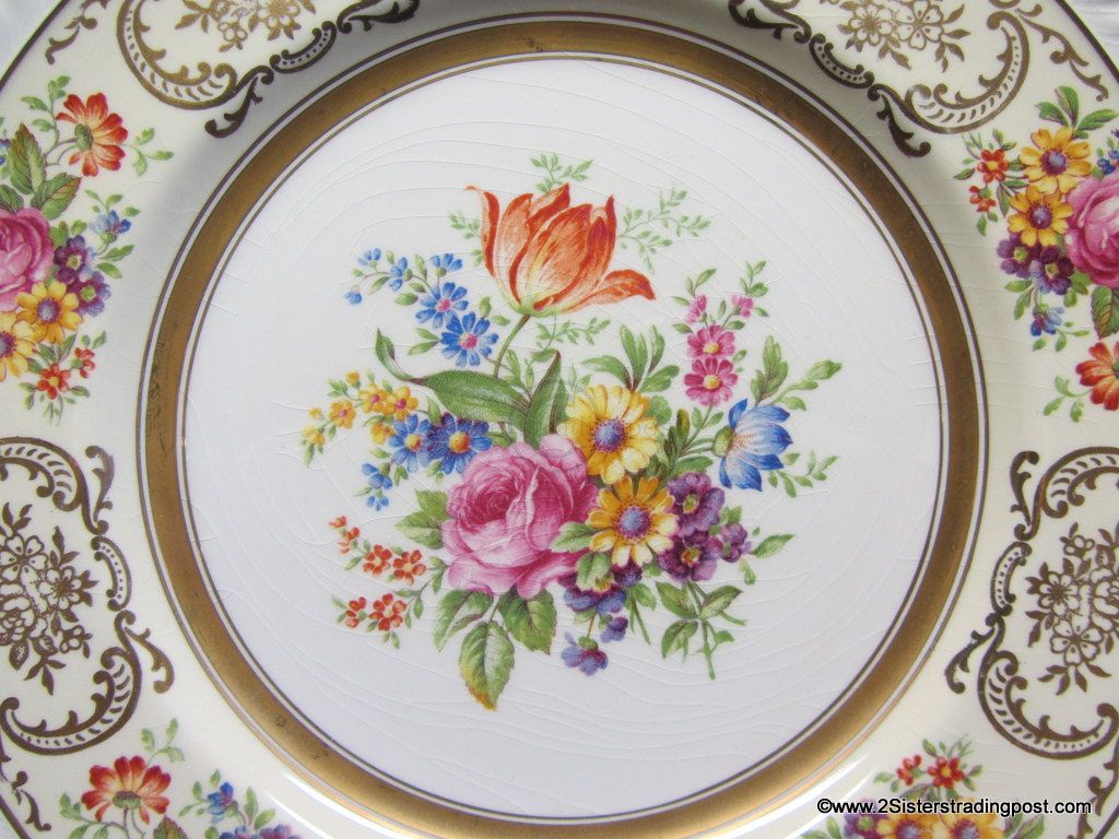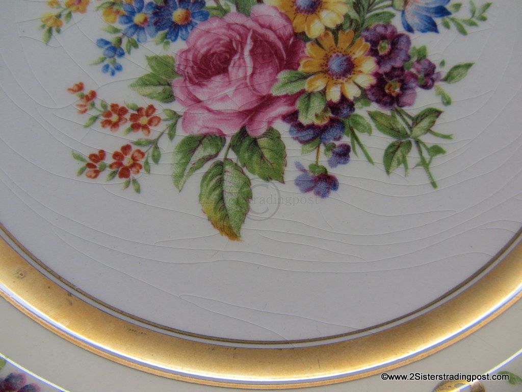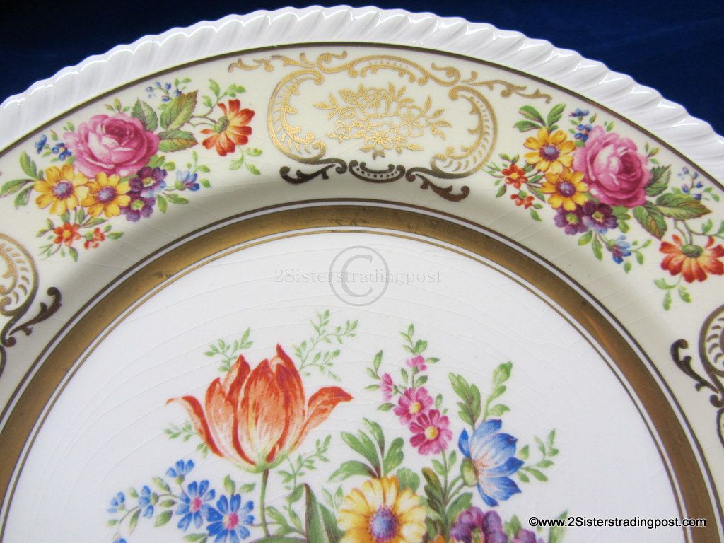 Pattern is BELFORD by Johnson Brothers this pattern is a discontinued item. The design is old English, multi-color flowers accented in gold plate measures 11" across. This piece has been used as a wall hanging not a dinner plate. Beautiful piece in very nice condition. NOTE: there is crazing present.