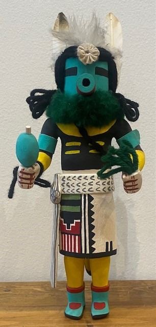 At times determining which Kachina it is, becomes difficult. I believe that this is Peeping Man Kachina, which was borrowed from the Santo Domingo during Corn Harvest.