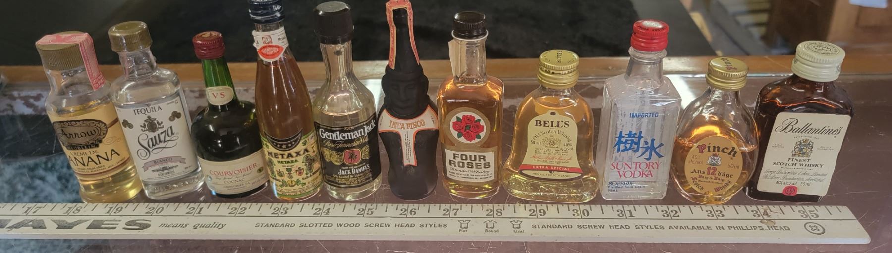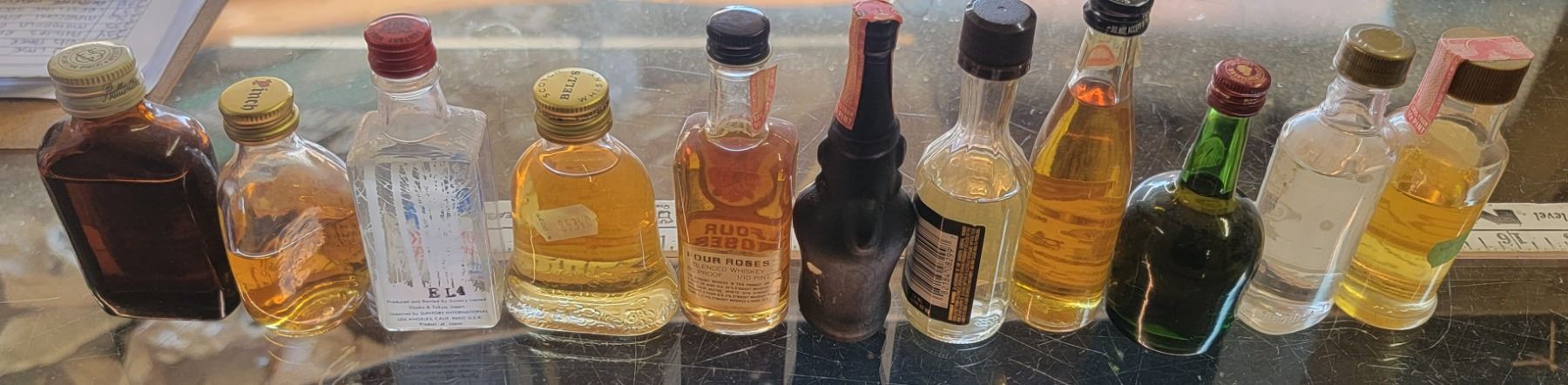 11 mini collectible liquor bottles - most full, some partial or empty (see pictures)
