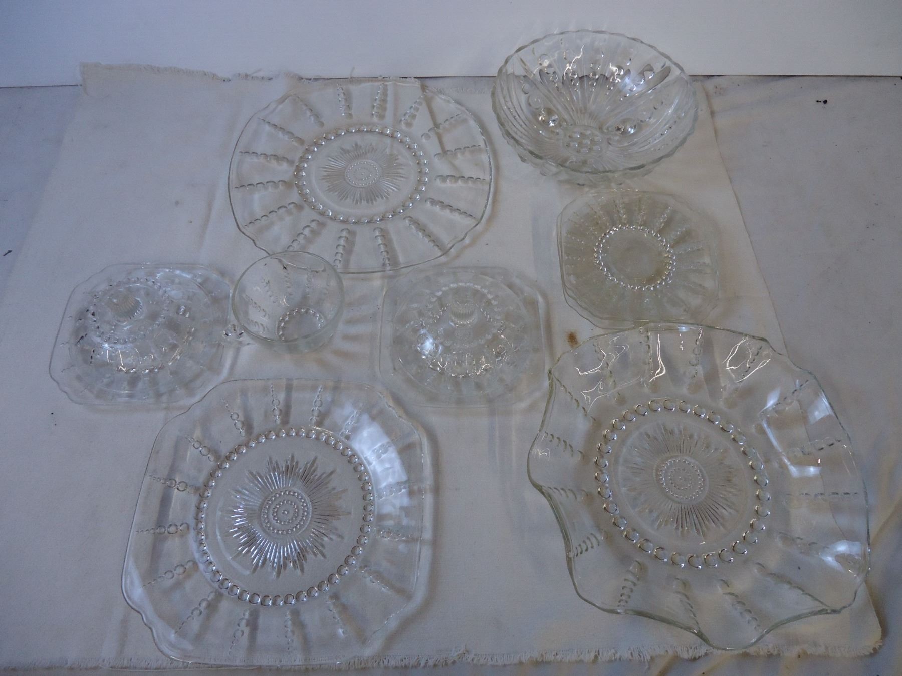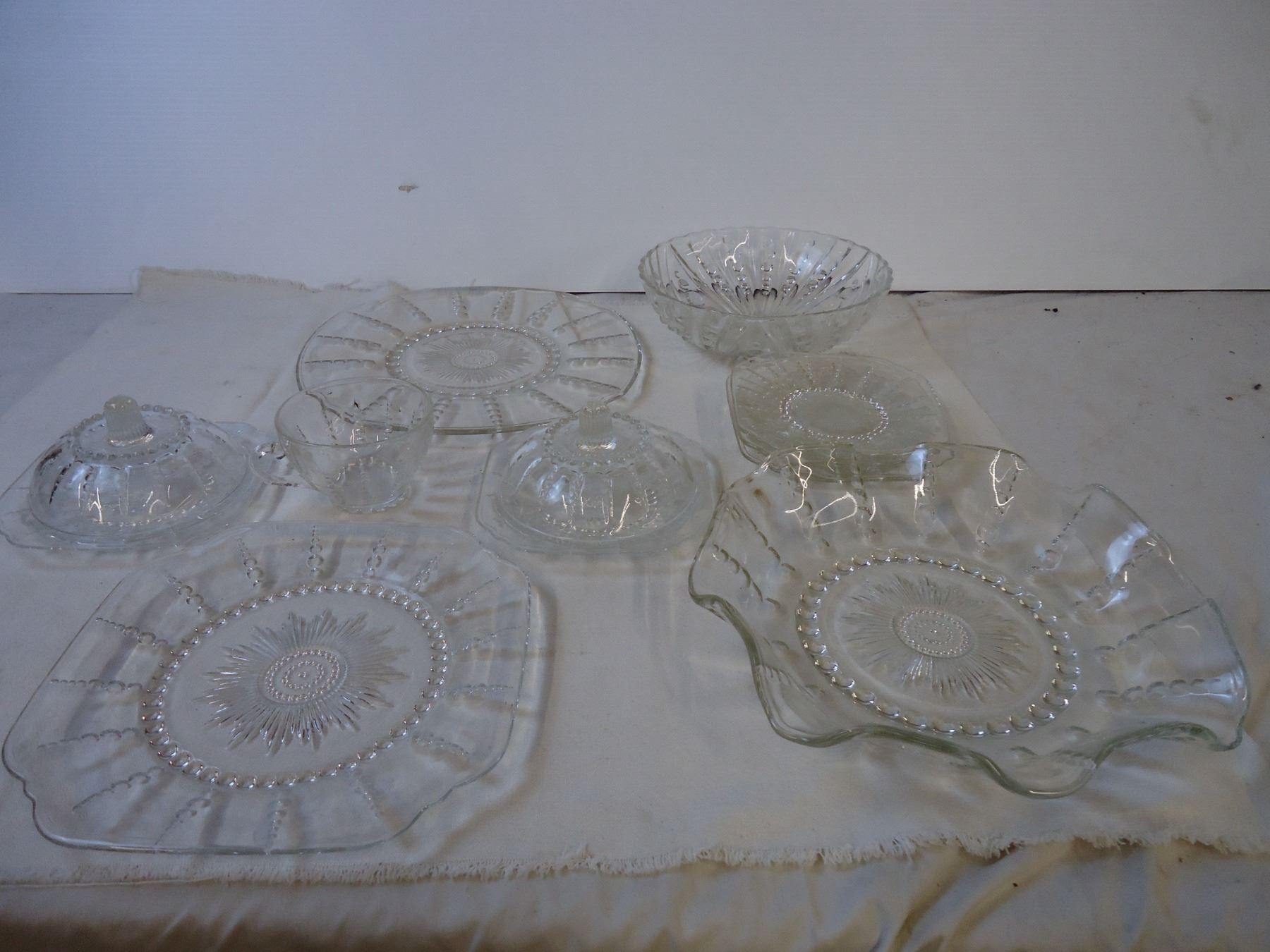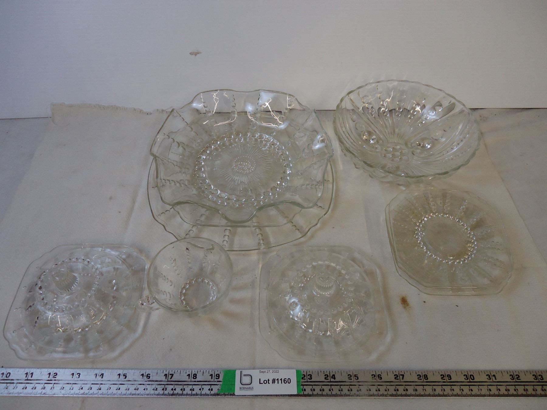 11 pcs. Columbia Glass, incl. 2 butter plates with lids and 1 lg. Bowl not Col.