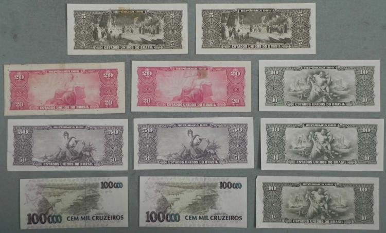 11 pcs of Brazil Paper Money 1970's (Most UNC) * * Condition: Uncirculated (most, but not all) *