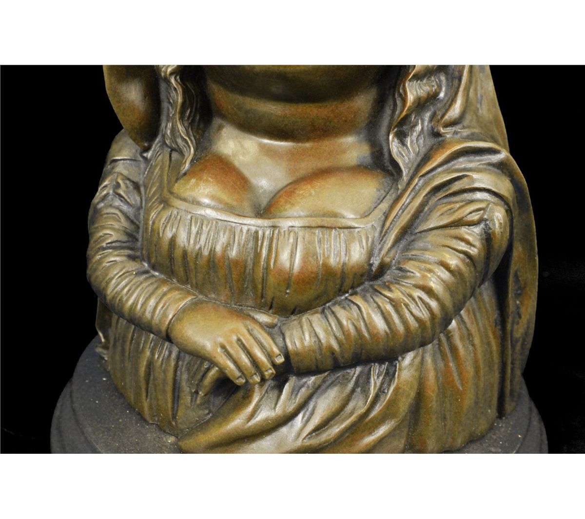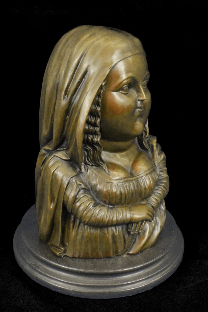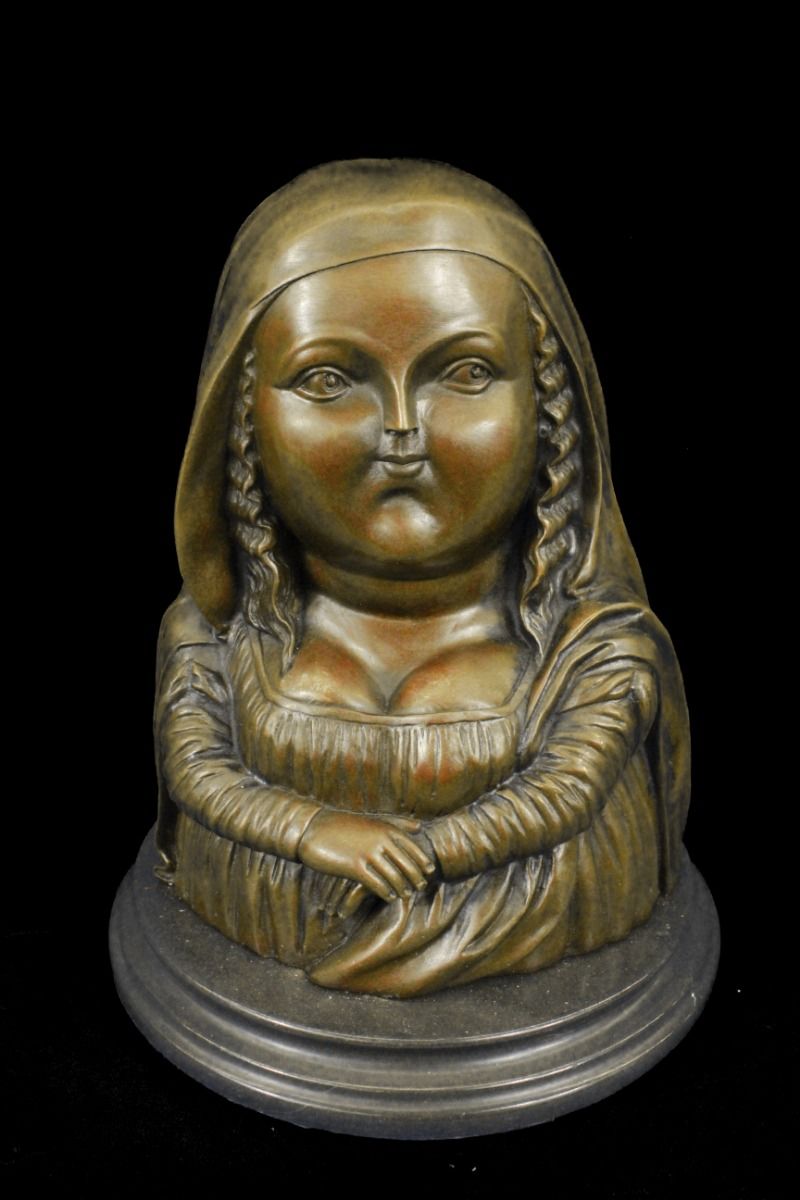 11DS49980 This Voluptuous Woman Is Simply Resting Her Folded Arms Underneath Her Bust. She Displays A Stoic Face. This Piece Is In Classic Botero Style. Fernando Botero Is A Colombian Artist That Has Gained International Recognition For His Paintings And Sculptures. His Work Is Known For Its Abstract Style Of Exaggerating Proportions That Is Depicted In This Sculpture. It Signed Botero. The Sculpture Was Created Using The Lost Wax Method And Is Set On A Black Marble Base..................SHIPPING USA: $20....HI, ALASKA, CANADA: $59...ALL OTHER COUNTRIES: $129