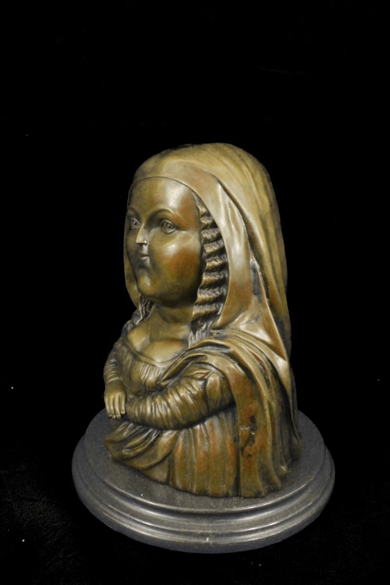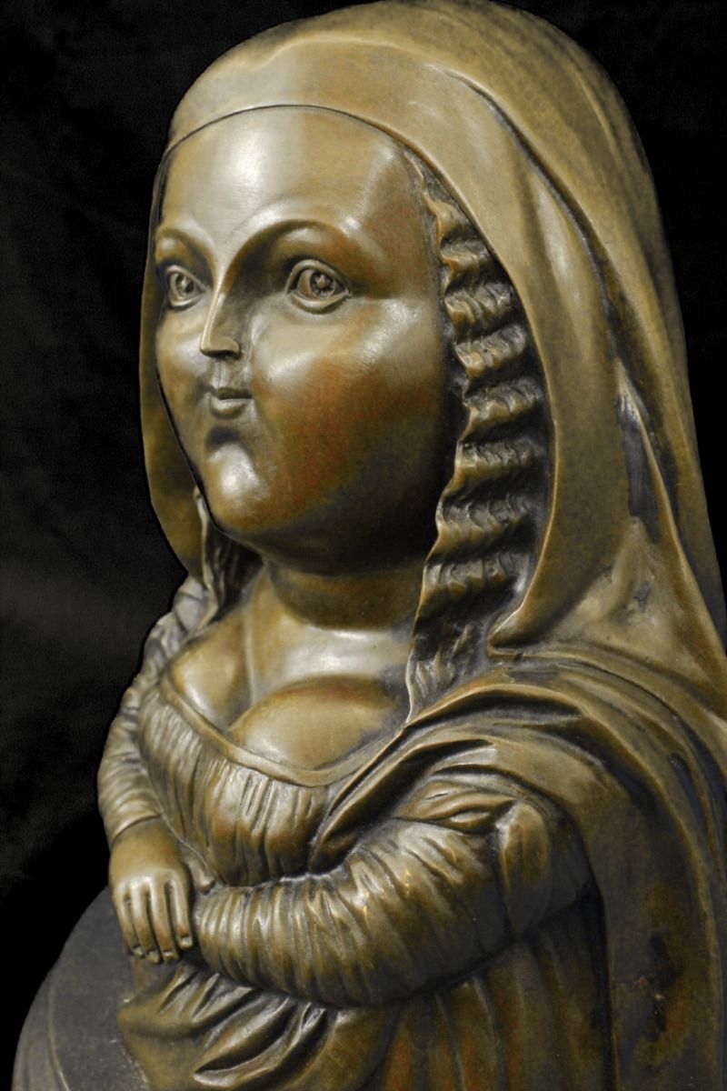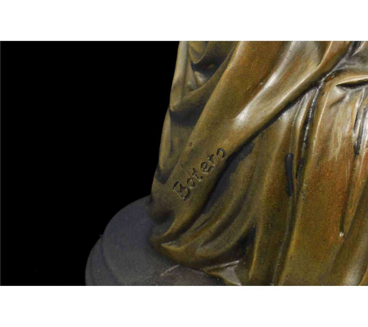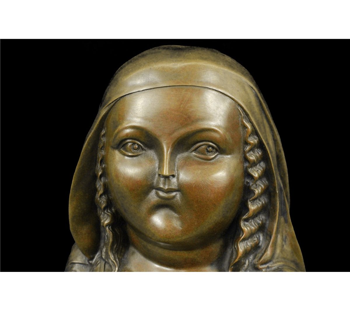 11DS49980 This Voluptuous Woman Is Simply Resting Her Folded Arms Underneath Her Bust. She Displays A Stoic Face. This Piece Is In Classic Botero Style. Fernando Botero Is A Colombian Artist That Has Gained International Recognition For His Paintings And Sculptures. His Work Is Known For Its Abstract Style Of Exaggerating Proportions That Is Depicted In This Sculpture. It Signed Botero. The Sculpture Was Created Using The Lost Wax Method And Is Set On A Black Marble Base..................SHIPPING USA: $20....HI, ALASKA, CANADA: $59...ALL OTHER COUNTRIES: $129