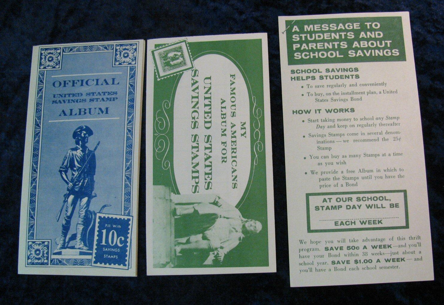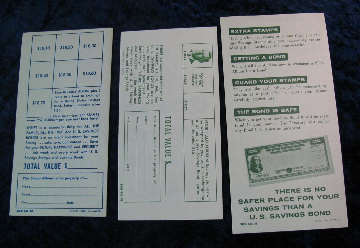 110. (3) Different pieces of U.S. Savings Bond & Stamp memorabilia from 1958.