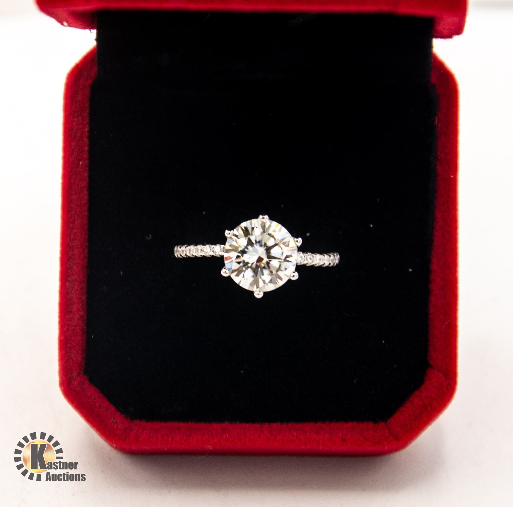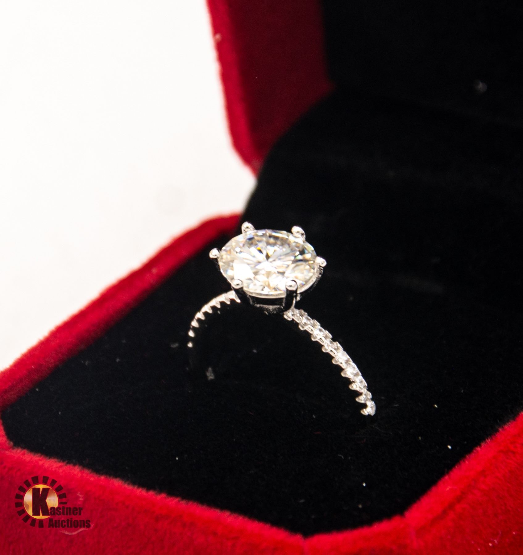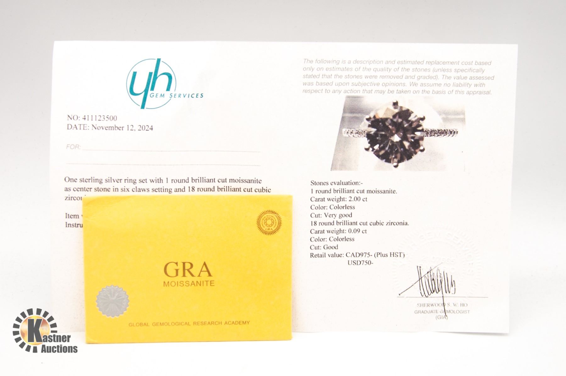 MOISSANITE STONE VVS D COLOR WITH 18 ROUND BRILLIANT CUT CUBIC ZIRCONIA SET IN THE SHANK SET IN 925 SILVER RING SIZE 7 RETAIL VALUE $975.00