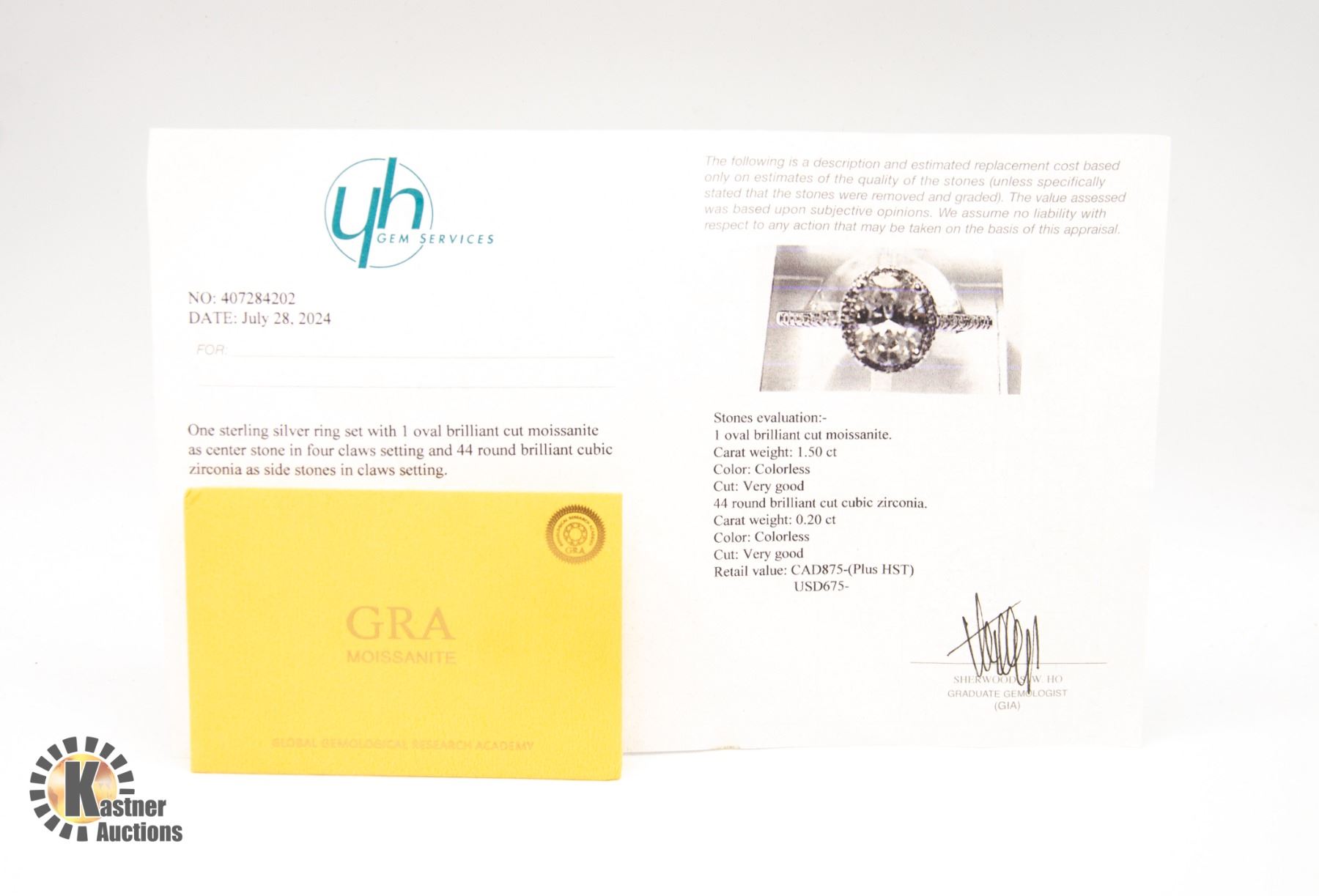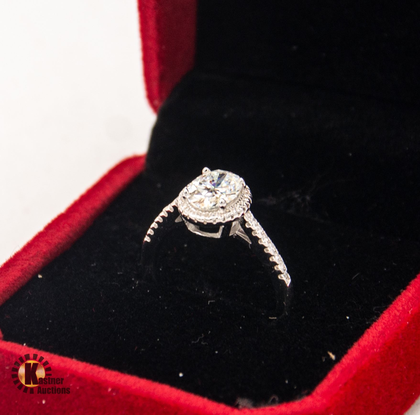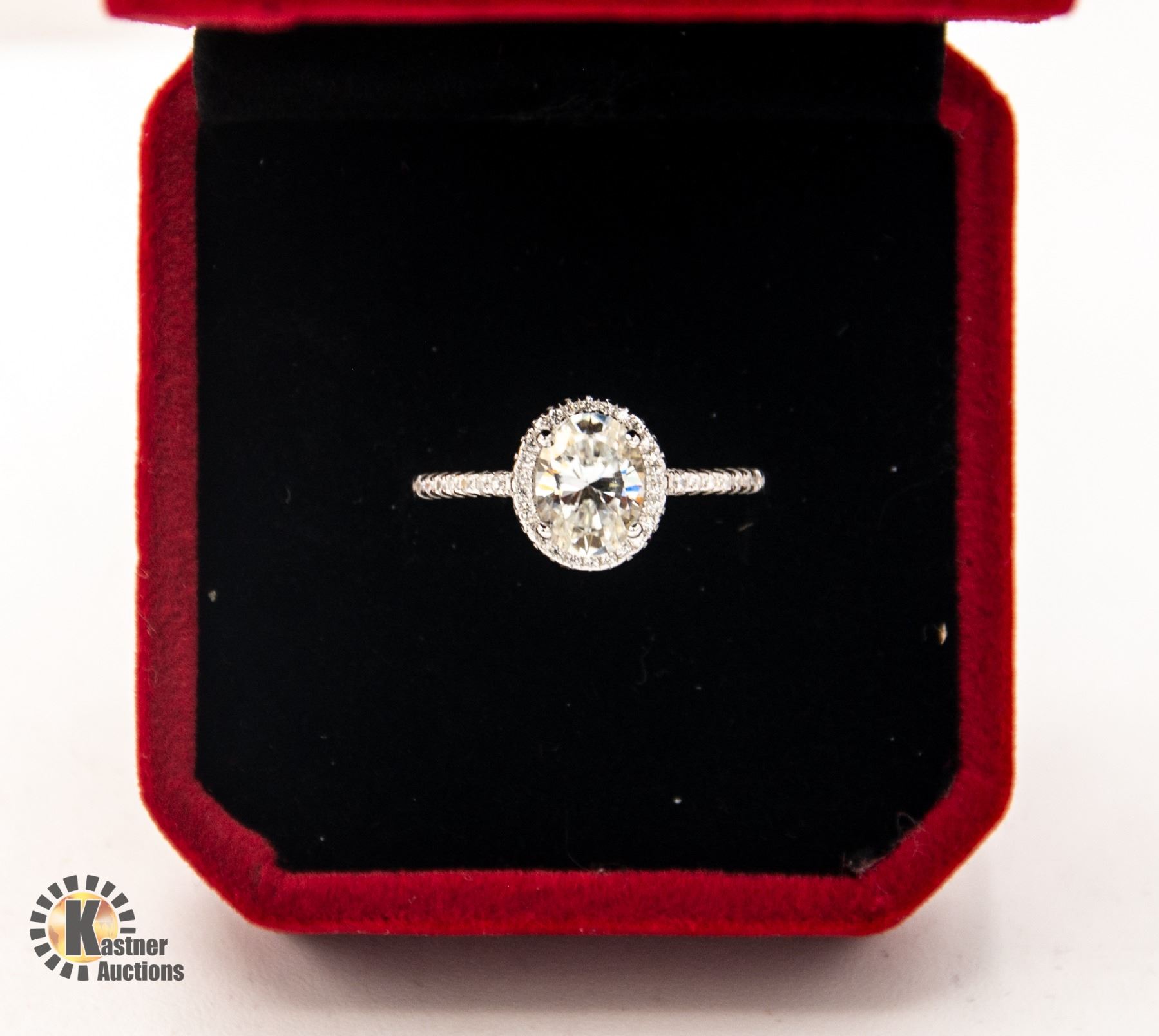 MOISSANITE STONE VVS D COLOR WITH 44 ROUND BRILLIANT CUT CUBIC ZIRCONIA SET IN OVAL HALO AND IN SHANKS SET IN 925 SILVER RING SIZE 6.5 RETAIL VALUE $75.00