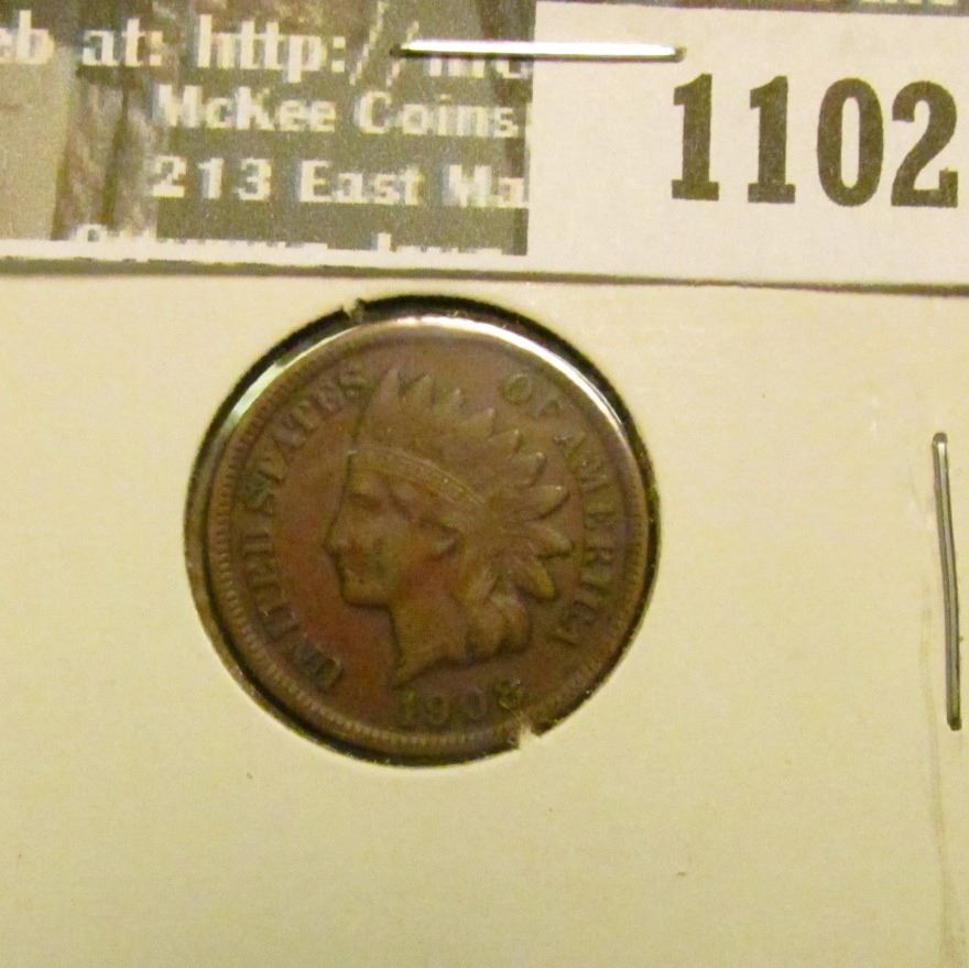1102 _ 1908 S U.S. Indian Head Cent, Very Fine.