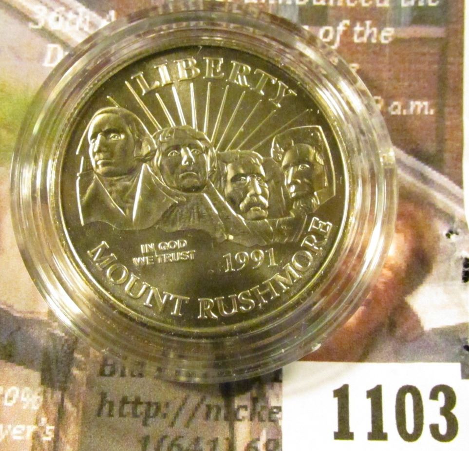 1103 . 1991-D Mount Rushmore Commemorative Half Dollar, BU in Mint
