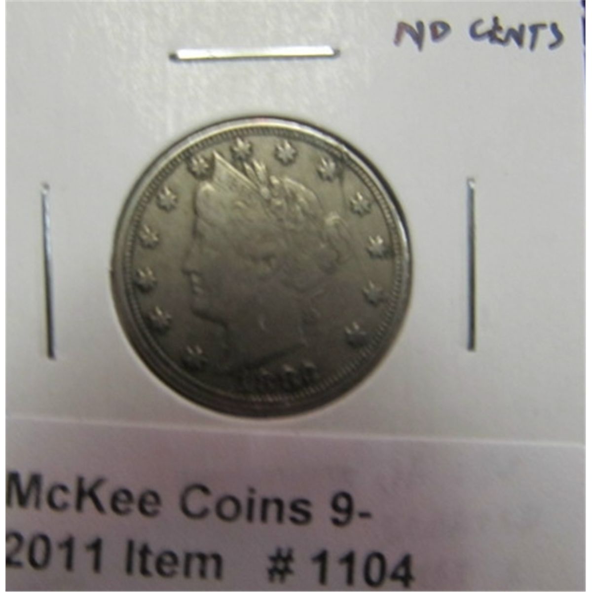 1104. 1883 NC Liberty Nickel. VF obv. scratch, Net F-12.