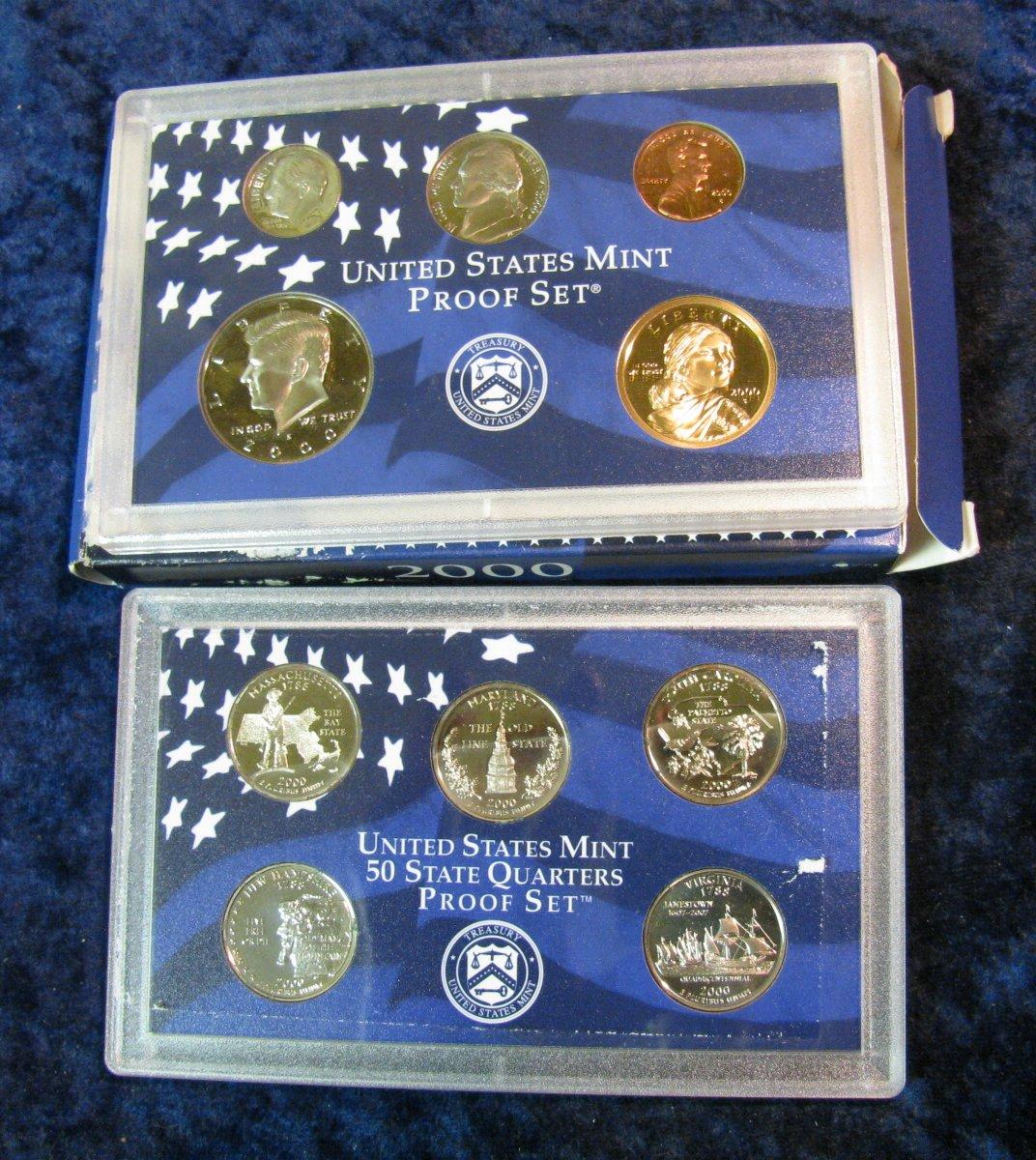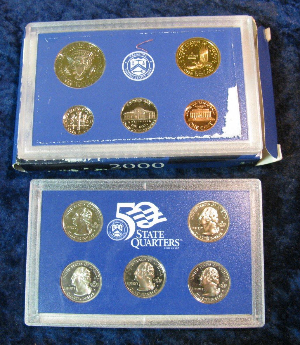 1104. 2000S US Proof Set. Water Damage to Box Coins Look Fine.