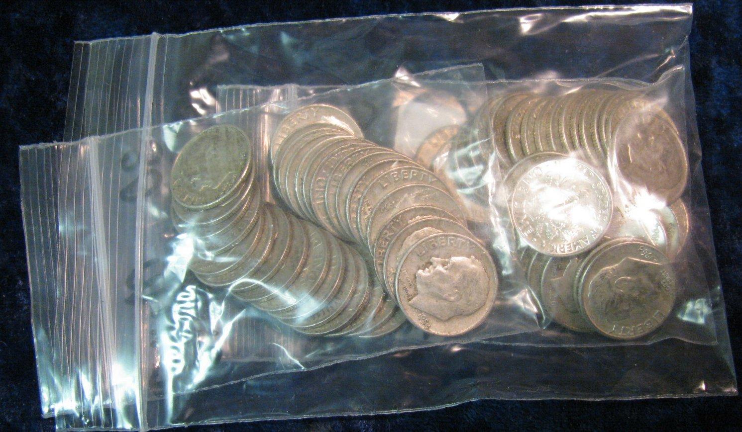 1106. (60) Mixed Silver Roosevelt Dimes.