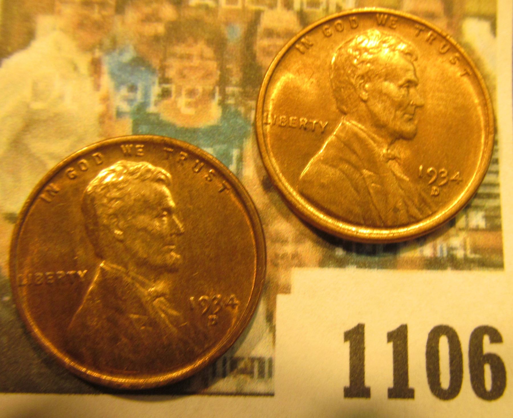 1106 _ Pair of 1934 D Lincoln Cents, both red-brown to Brilliant Red Uncirculated.