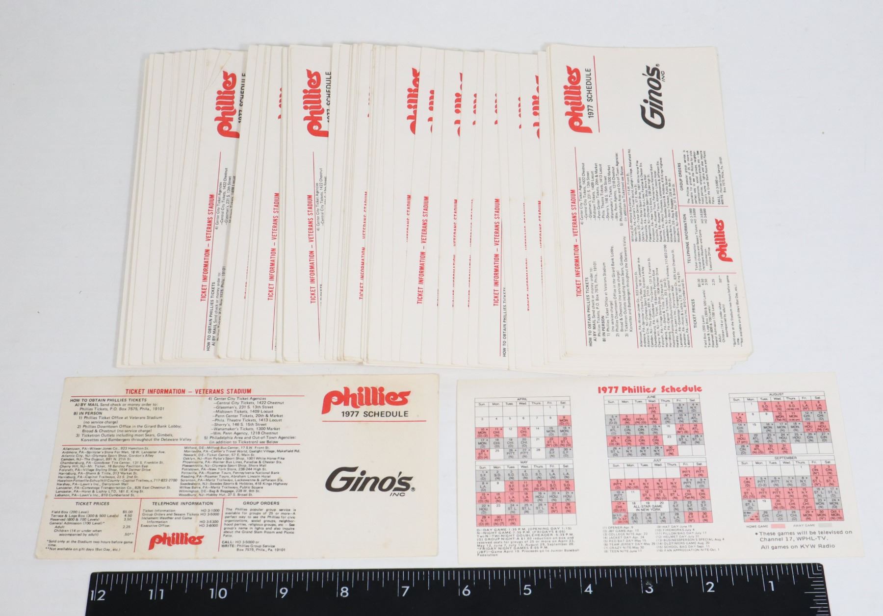 LARGE LOT OF PHILADELPHIA PHILLIES SCHEDULES 1977 50+ TOTAL MLB BASEBALL