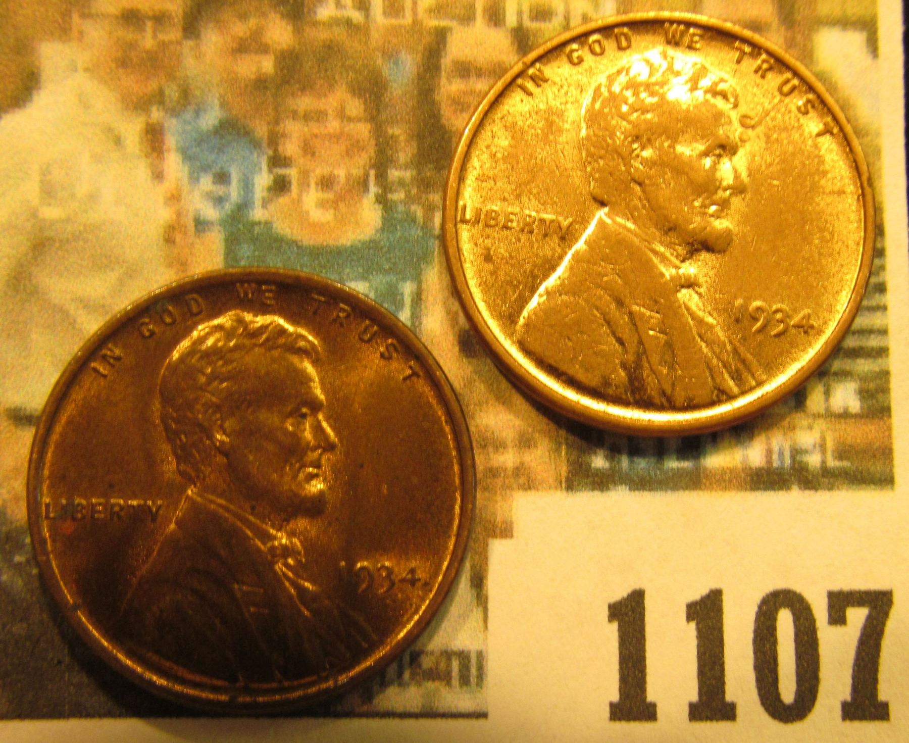 1107 _ Pair of 1934 P Lincoln Cents, both red-brown to Brilliant Red Uncirculated.