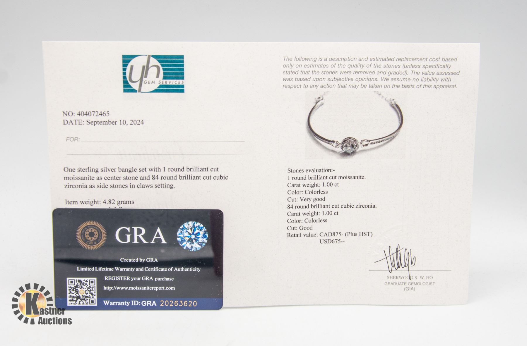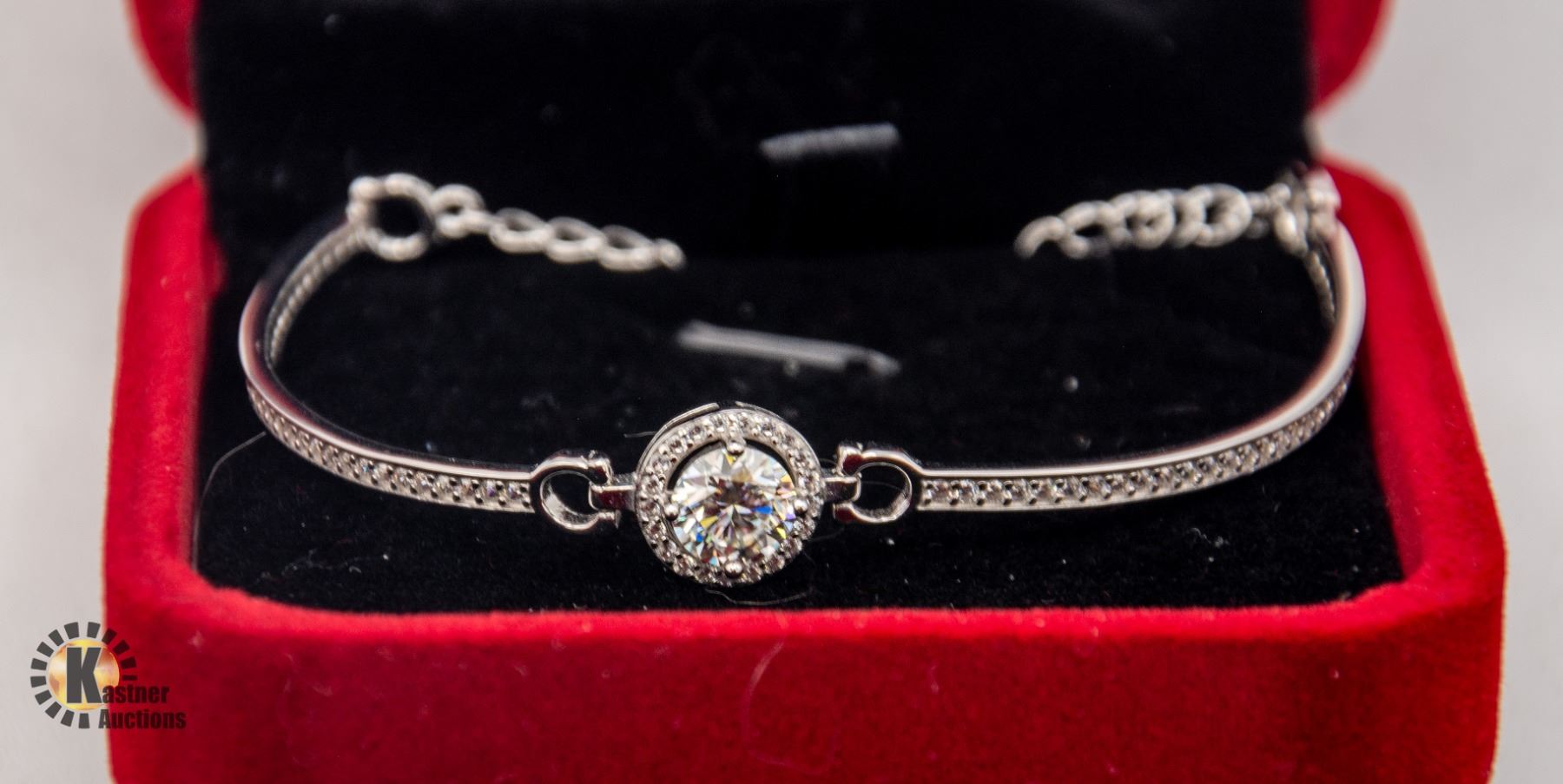 MOISSANITE STONE VVS D COLOR SET IN ROUND HALO SET IN 925 SILVER BRACELET RETAIL VALUE $875.00 **ALL ITEMS MUST BE REMOVED BY 5PM SATURDAY, DECEMBER 7TH 2024. ALL REMAINING ITEMS WILL BE SUBJECT TO A $6.00 PER DAY STORAGE CHARGE. ANY ITEMS REMAINING AFTER MONDAY, DECEMBER 23RD 2024 WILL BE CONSIDERED FORFEITED. NO REFUNDS WILL BE ISSUED FOR FORFEITED ITEMS. TO SCHEDULE A PICK UP APPOINTMENT CLICK HERE