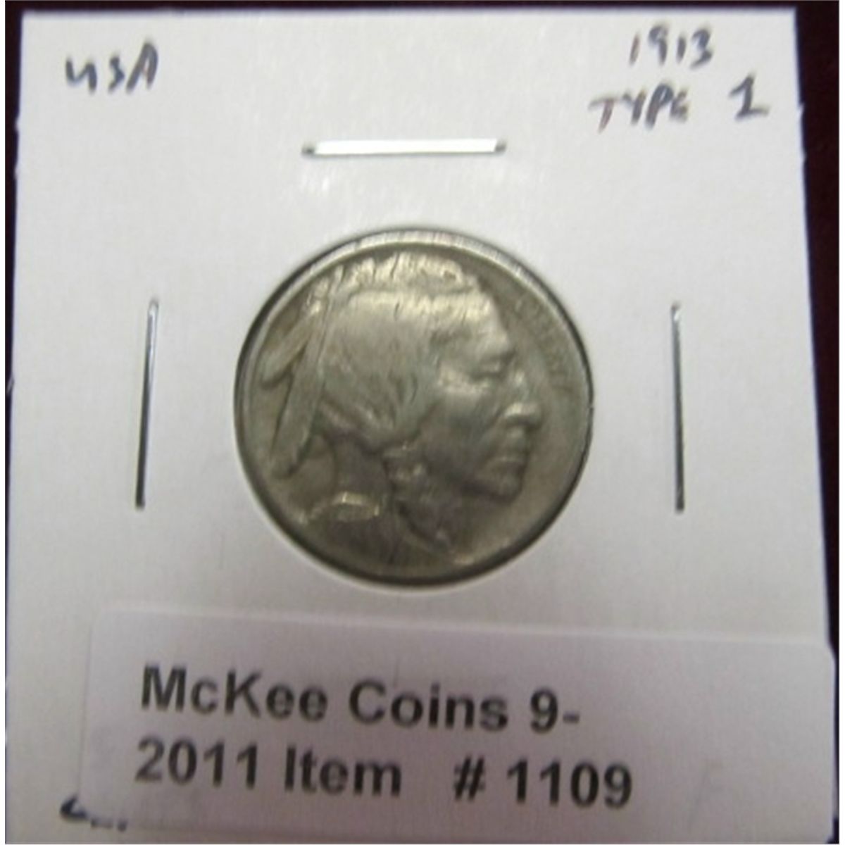 1109. 1913 P Type One Buffalo Nickel. F-12.