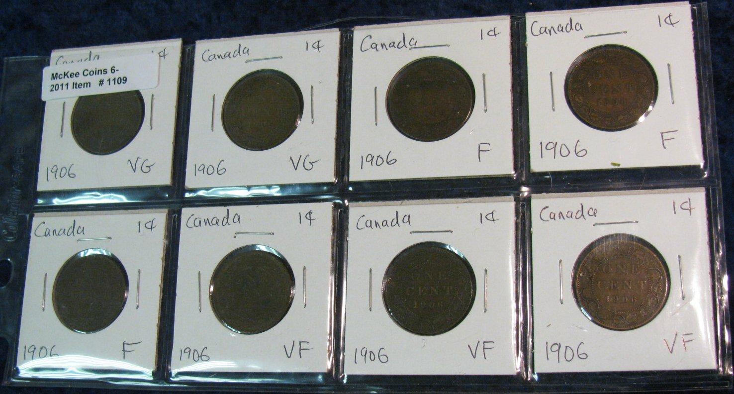 1109. (8) 1906 Canada Large Cents. Grading VG-VF.