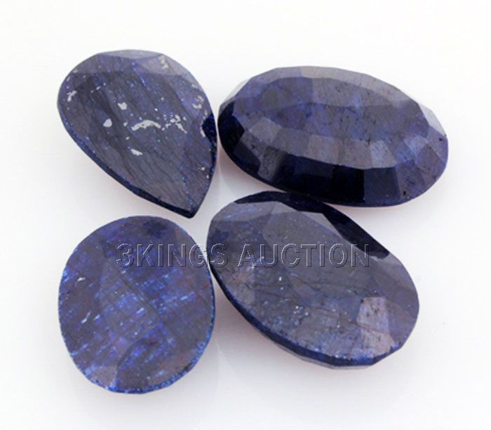 111.26ctw SapphireMixShape&SizesLooseGemstone lotof4 **|**|** 4 pcs Mix Sizes 18-25x15-18x7-8mm Natural Blue Sapphire Gemstone Oval and Pear Shape ; MSRP: $400