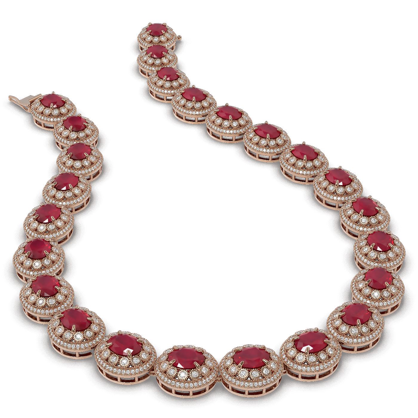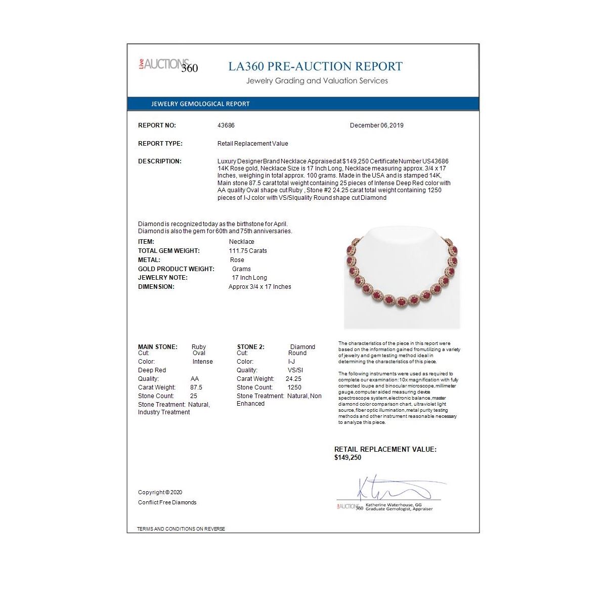 REF-3015X5A - SKU: 43686 ---- 111.75 ctw Certified Ruby & Diamond Victorian Necklace 14K Rose Gold