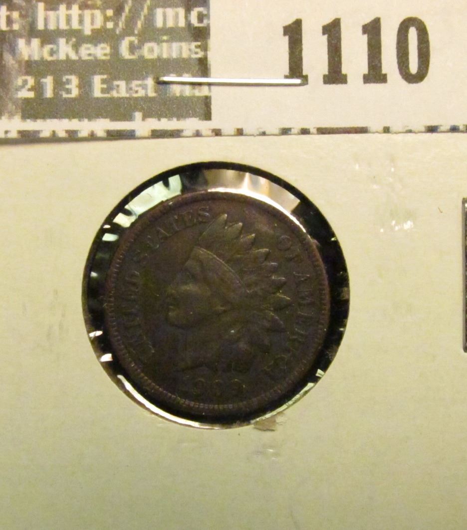 1110 _ 1909 P U.S. Indian Head Cent, Very Fine.